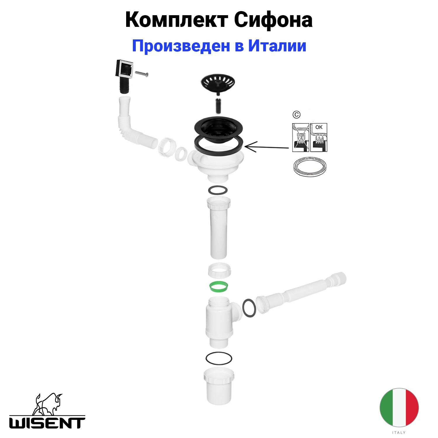 Комплект кухонная мойка WISENT WS35848B/W302644B/W405B/WGER010