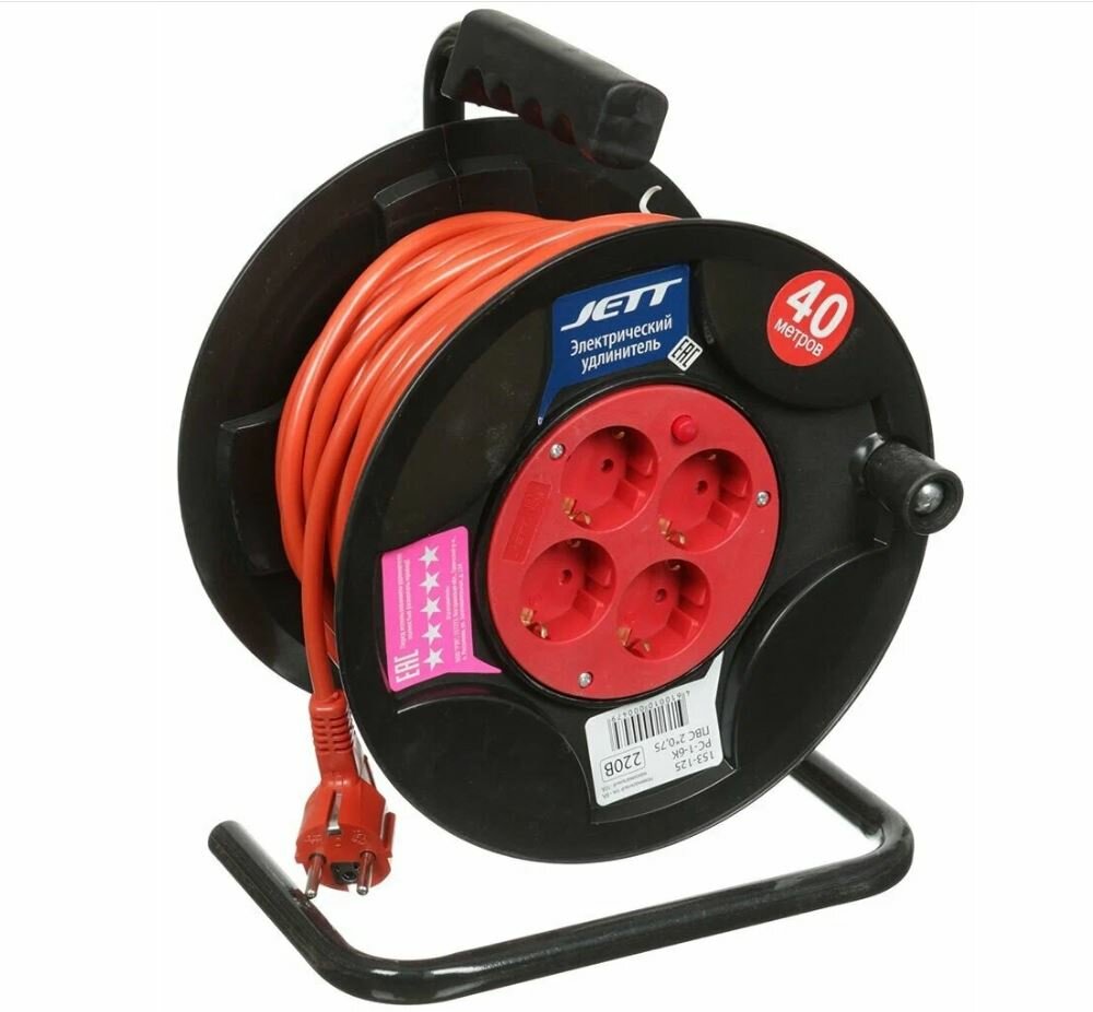 Ниже Вы можете прочитать отзывы на Силовой удлинитель на катушке JETT ( джетт) с заземлением,4 розетки,40 м.,чёрный, ознакомится с подробными характеристиками, посмотреть интересные обзоры и фотографии на Силовой удлинитель на катушке JETT ( джетт) с заземлением,4 розетки,40 м.,чёрный.