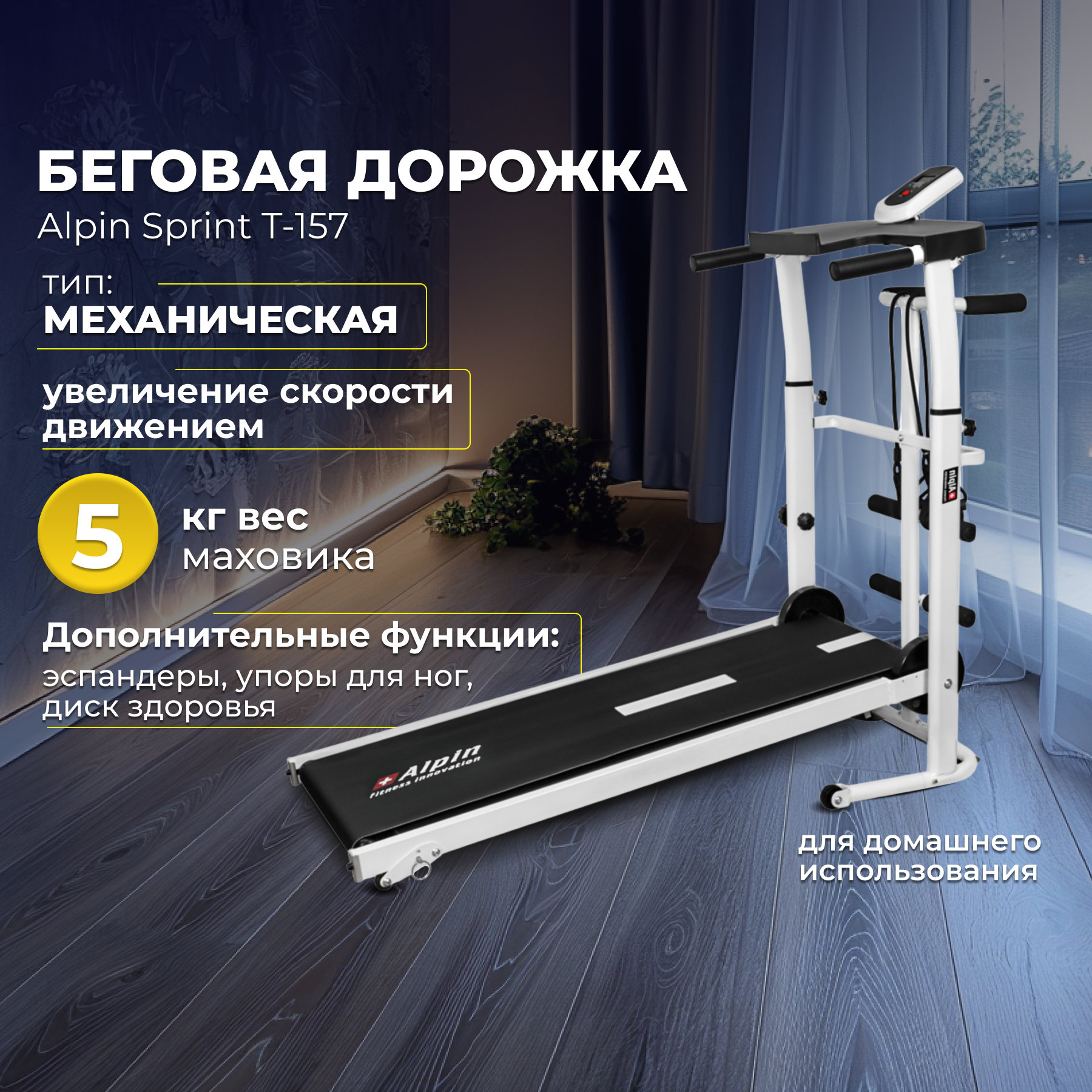 Механическая беговая дорожка Alpin Sprint T157 для дома интересное: