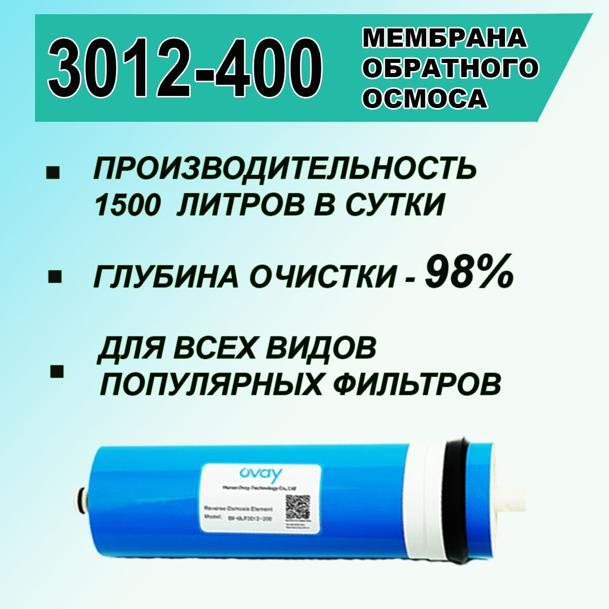 Мембрана обратноосмотическая OV - 3012 - 400 Ovay, универсальная, для фильтров обратным осмосом интересное:
