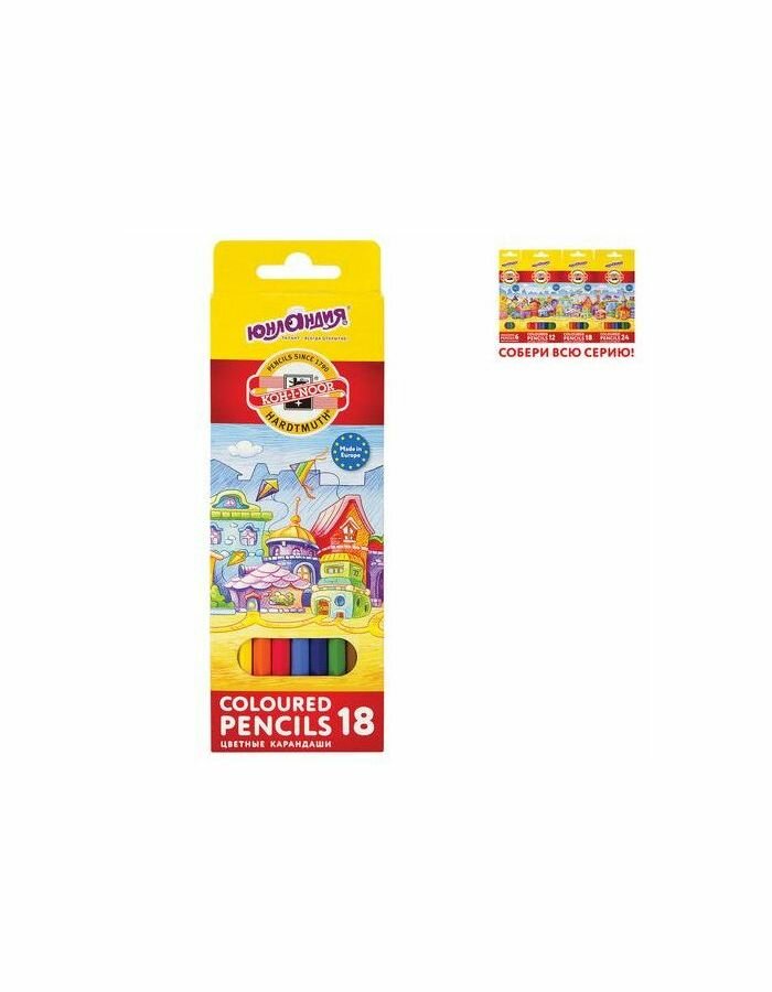 Карандаши цветные юнландия "Домики" (KOH-I-NOOR EXCLUSIVE), 18 цветов, Чехия, 181554, 3553018045KS, 181554