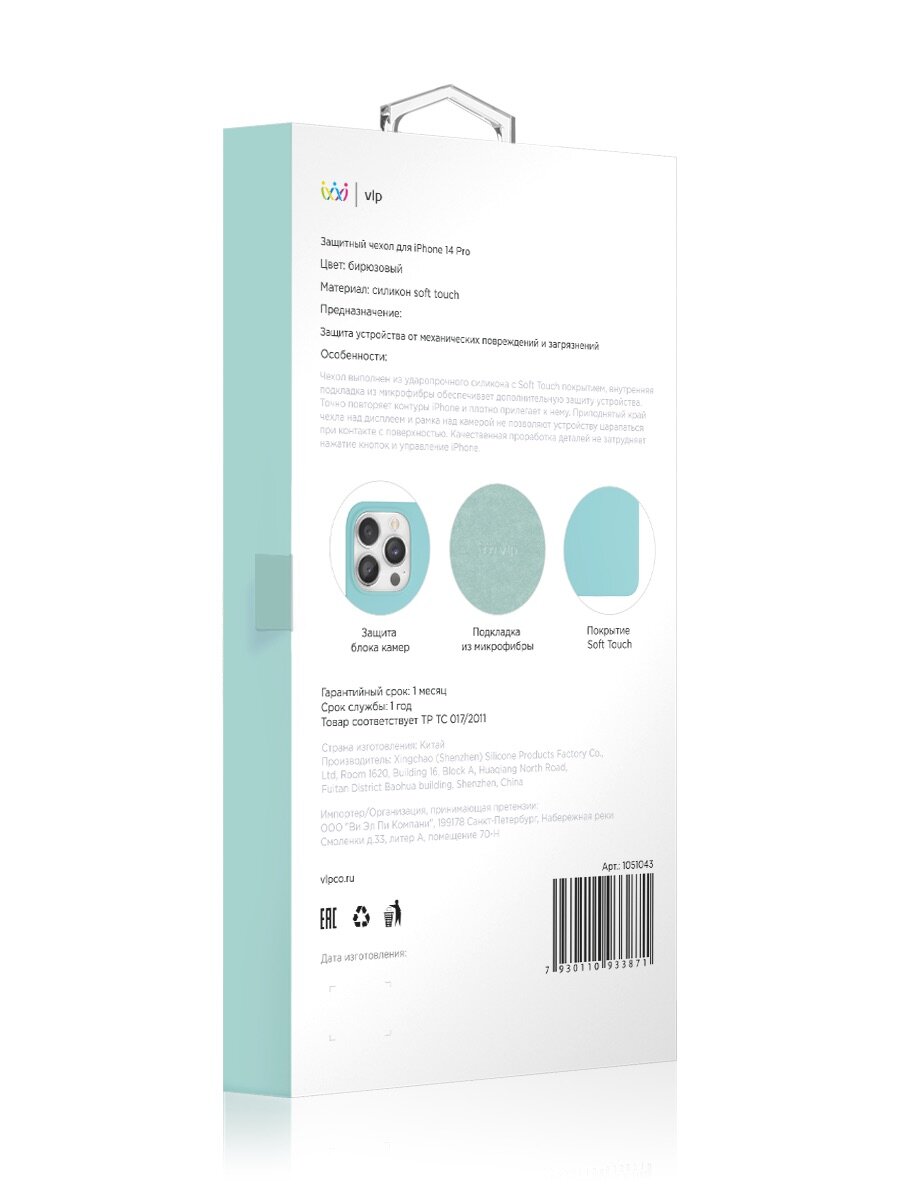Чехол защитный "vlp" Silicone case для iPhone 14 Pro, бирюзовый