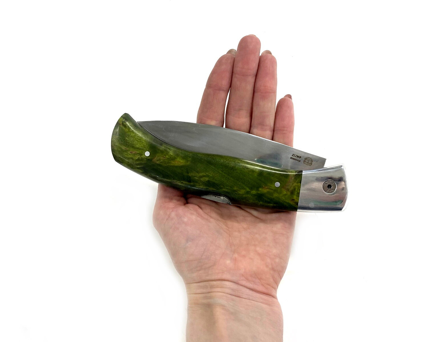 Складной нож Север, кованая Х12МФ, стабилизированная карельская береза, зеленый