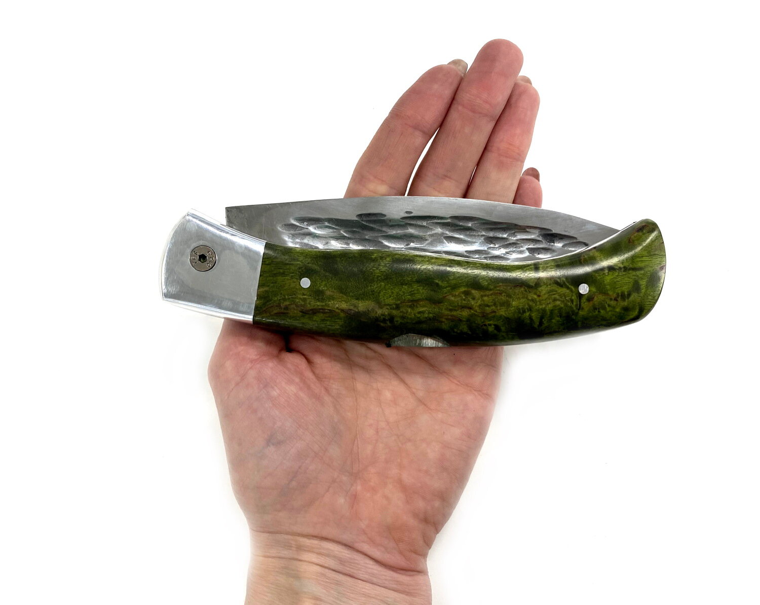 Складной Якутский нож, кованая Х12МФ, стабилизированная карельская береза, зеленый интересное: