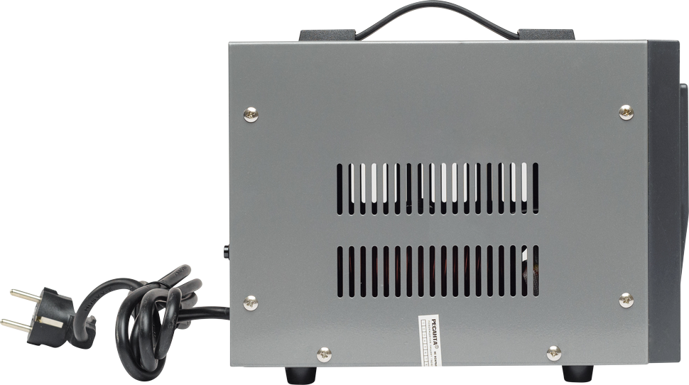 Компактный стабилизатор напряжения. Есть удобная ручка для переноски устройства с места на место. Со своей задачей справляется легко. От перегрева спасает специальный кулер. Он запускается при необходимости. стабилизатор не шумный.