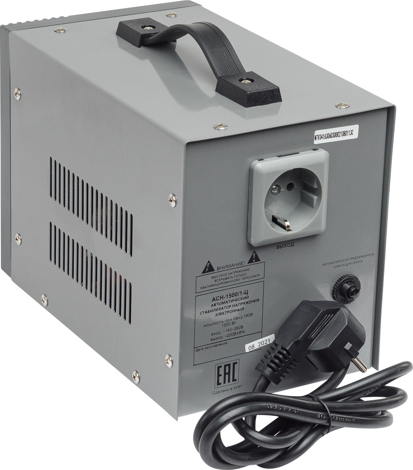 Отличный стабилизатор напряжения с номинальным напряжением 1,5 кВт. Удобно, что есть дисплей, на котором отображаются основные характеристики устройства. Цифры крупные, поэтому очки мне не нужны, чтобы рассмотреть.