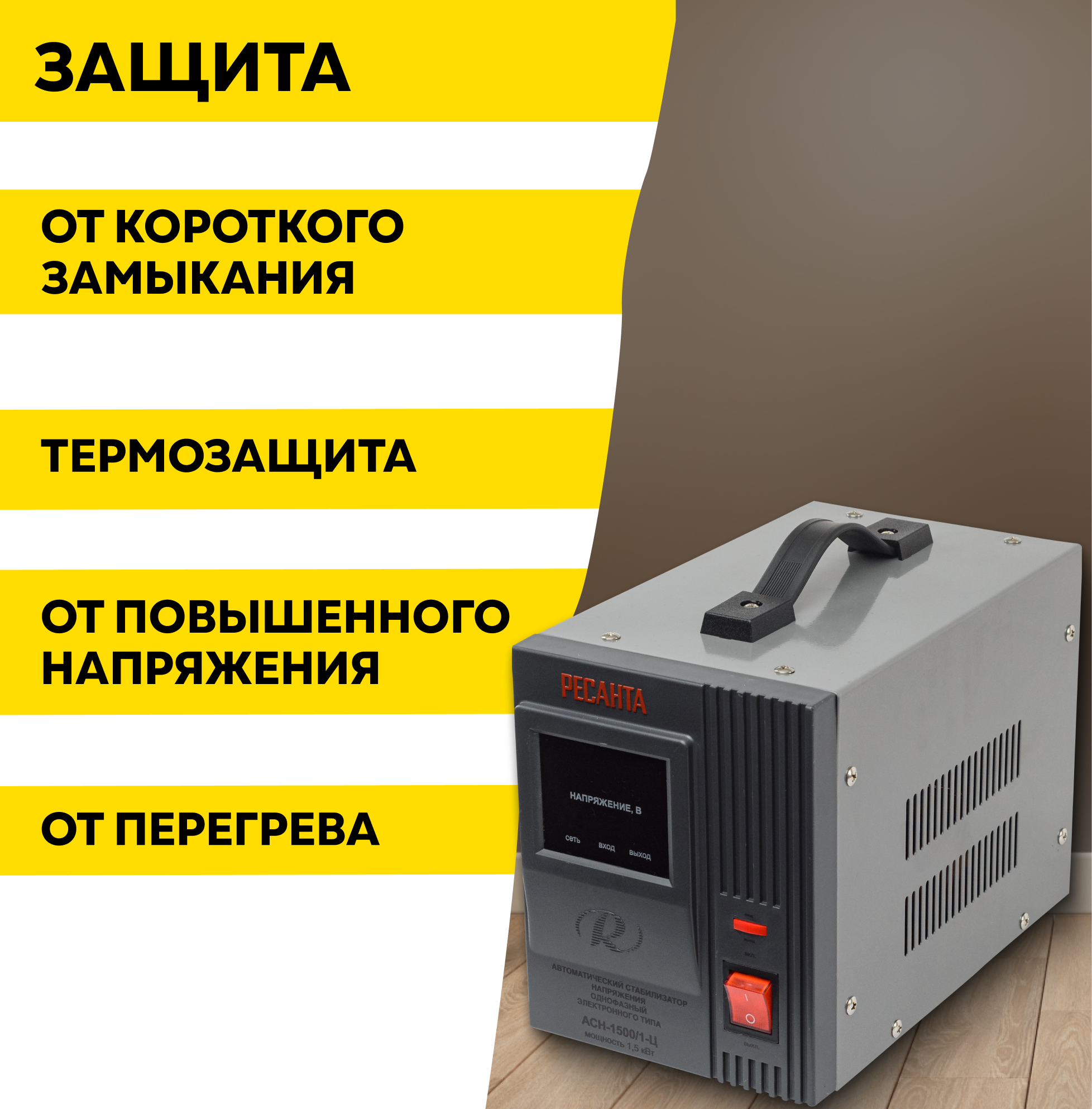 Ниже Вы можете прочитать отзывы на Стабилизатор напряжения однофазный РЕСАНТА ACH-1500/1-Ц, 1.5 кВт, ознакомится с подробными характеристиками, посмотреть интересные обзоры и фотографии на Стабилизатор напряжения однофазный РЕСАНТА ACH-1500/1-Ц, 1.5 кВт.