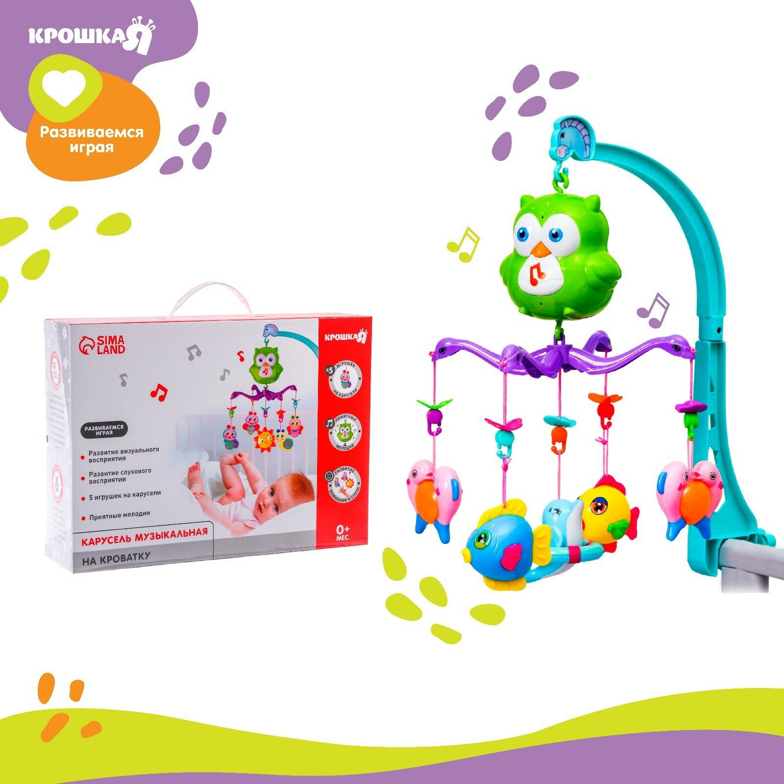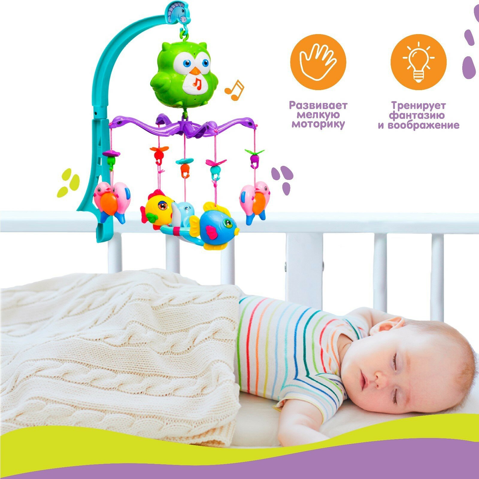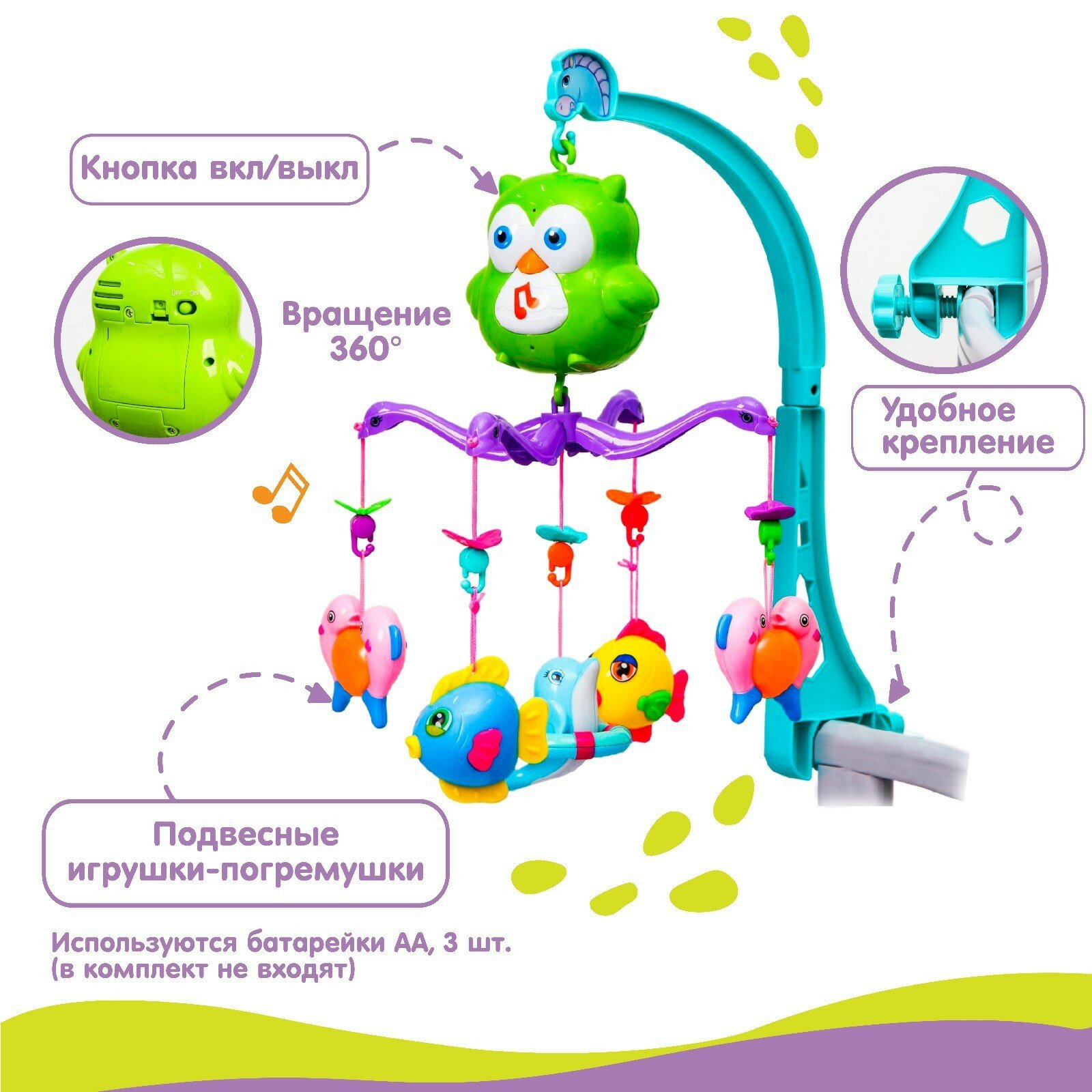 Мобиль музыкальный на кроватку «Совушка», работает от батареек, интересное:
