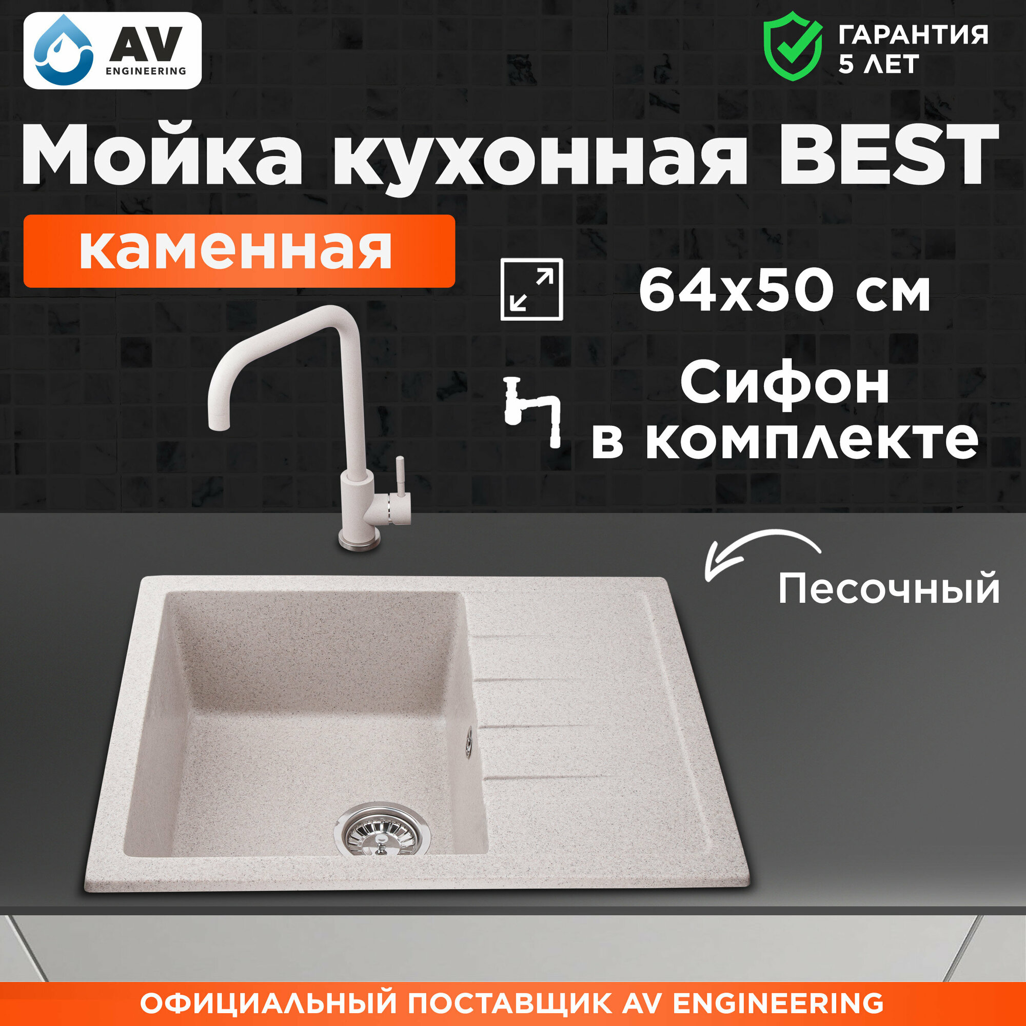 СохранитьМойка кухонная из искусственного камня BEST песочный 640х500 mm, AV Engineering интересное: