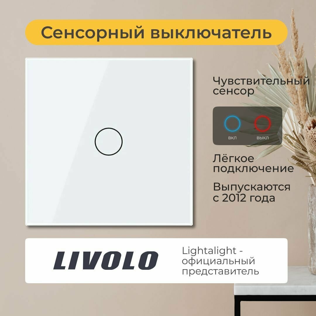 Одноклавишный сенсорный выключатель Livolo, 1 пост, цвет белый (VL-C701-11) Ливолотач