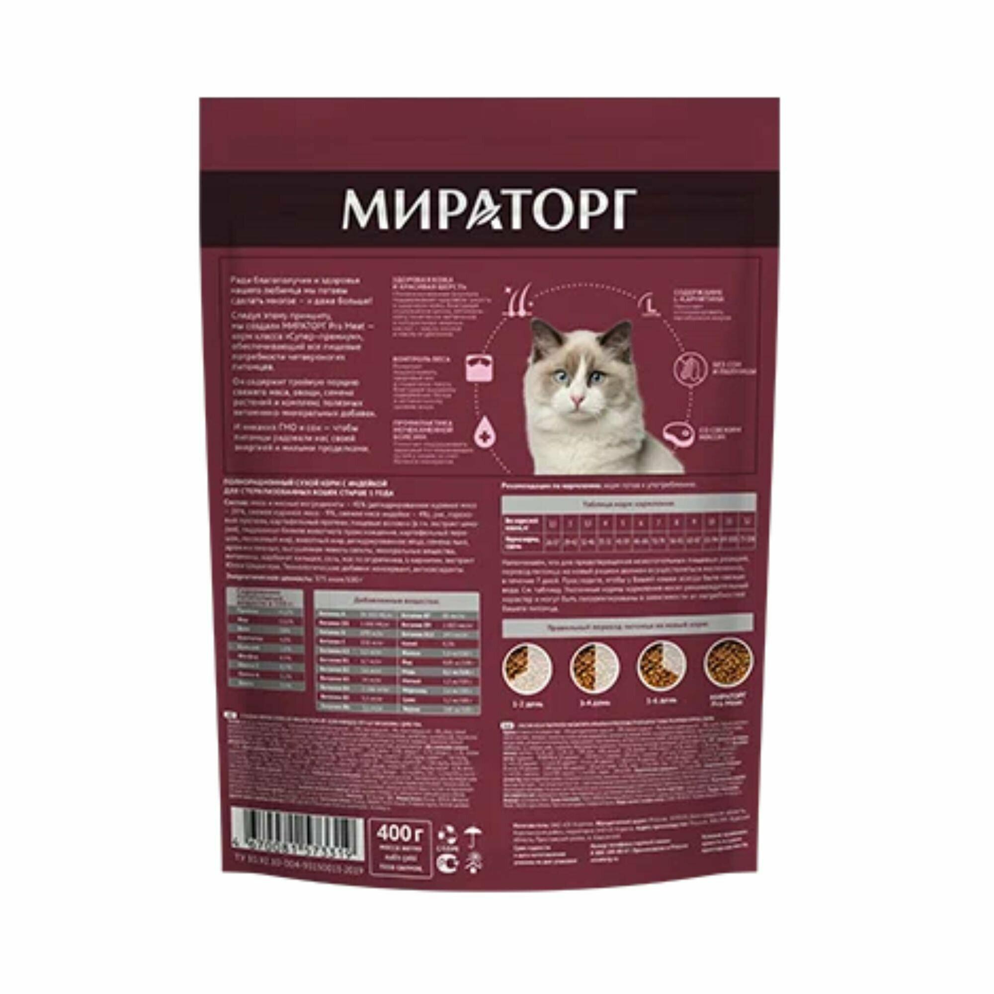 Сухой корм мираторг PRO MEAT STERILIZED для взрослых кастрированных котов и стерилизованных кошек с кроликом (0,4 кг)