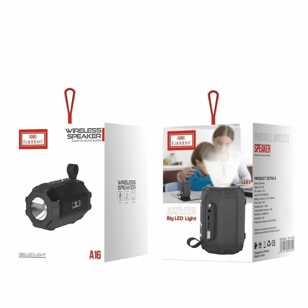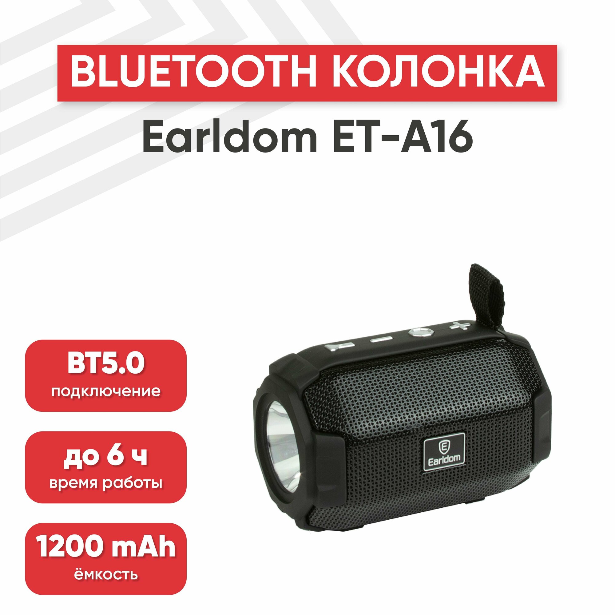 Bluetooth колонка Earldom ET-A16 BT 5.0, 7W, AUX/MicroSD/USB, фонарь (черный)
