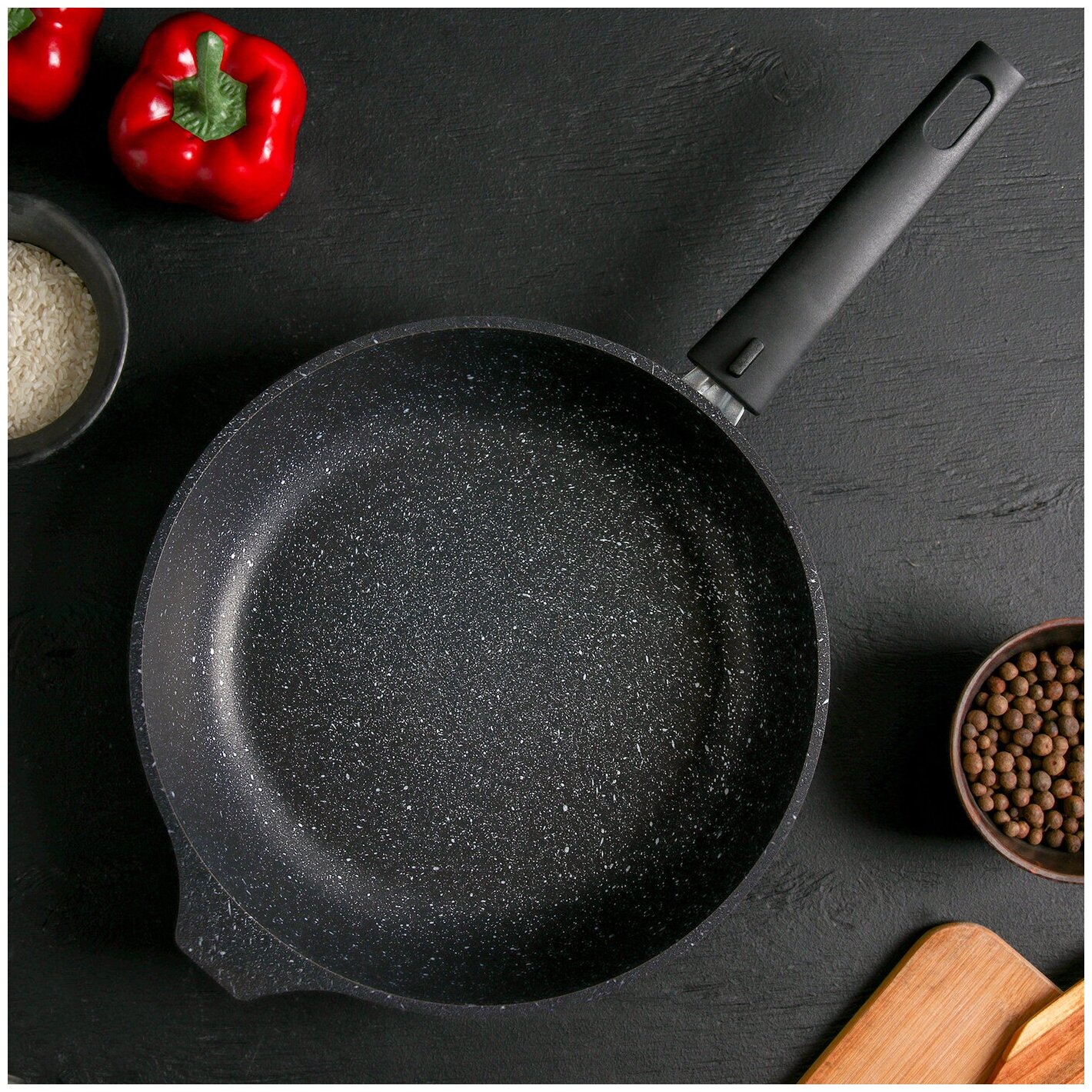 Сковорода, d=26 см, с ручкой, стеклянная крышка, антипригарное покрытие, тёмный мрамор