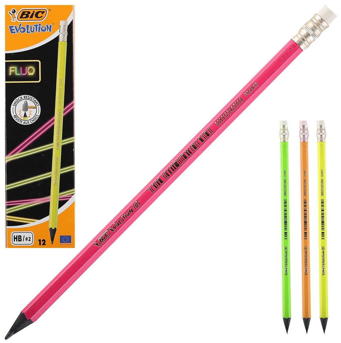 Карандаш чернографитный BIC, 1 шт., "Evolution Fluo", HB, с резинкой, пластиковый, корпус ассорти, заточенный, 942882, 12 штук интересное: