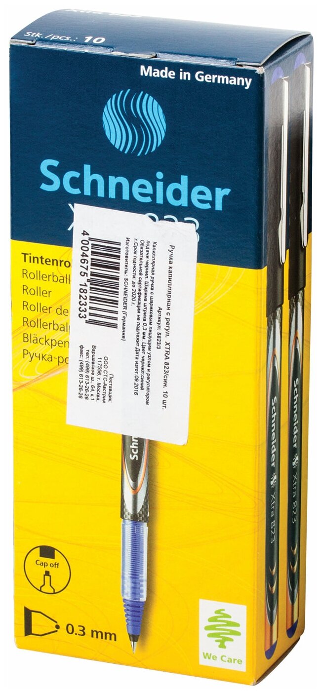 Ручка-роллер Schneider Xtra 823 (0.3мм, синяя, регулятор подачи чернил) 10шт. (823/3)