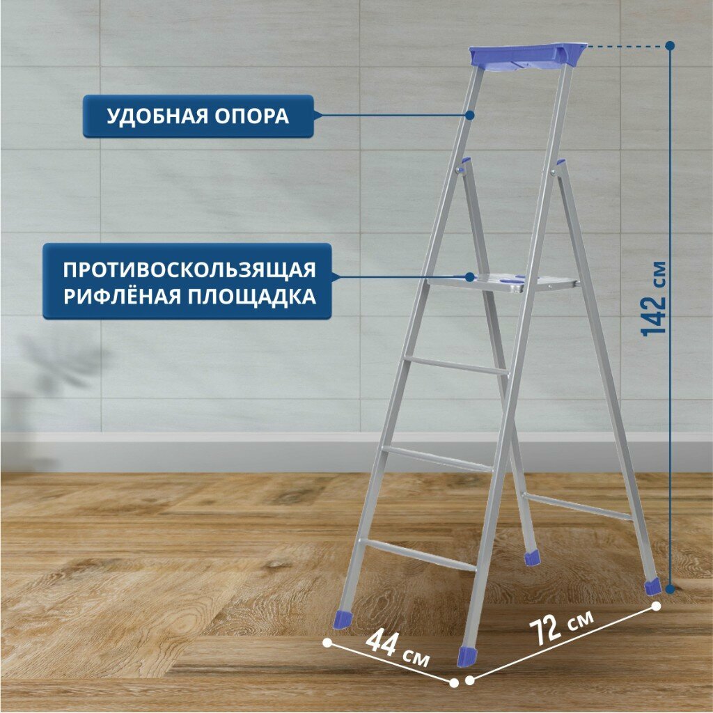 Стремянка 4 ступени, металл, 0.845 м, 100 кг, с широкой ступенью, Nika, СП4