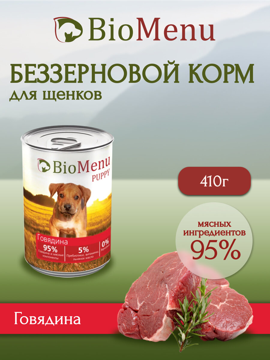 BioMenu Puppy влажный корм для щенков с говядиной, в консервах - 410 г х 12 шт
