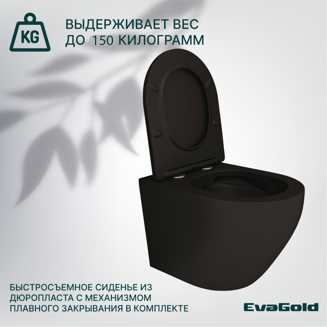 Унитаз подвесной EvaGold K505 черный матовый безободковый с сиденье дюропласт интересное: