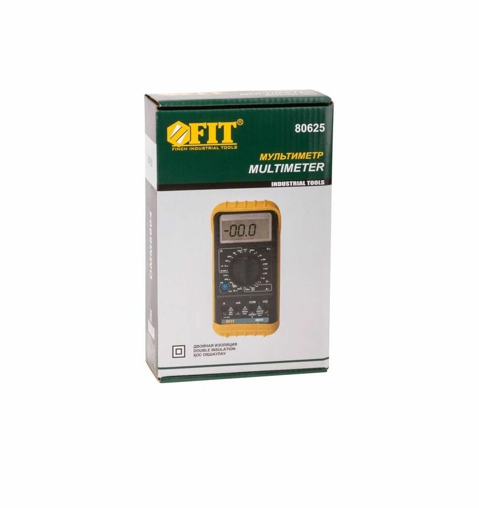 FIT Мультиметр 0,1 мВ-1000 В; 0,1 В-750 В; 1 мкА-20 А; 0,1 Ом-20 МОм; коробка [80625] .