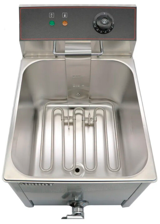 Фритюрница электрическая AIRHOT EF16 профессиональная, 5 кВт, 16 л, 1 ванна, нержавеющая сталь, кран для слива масла