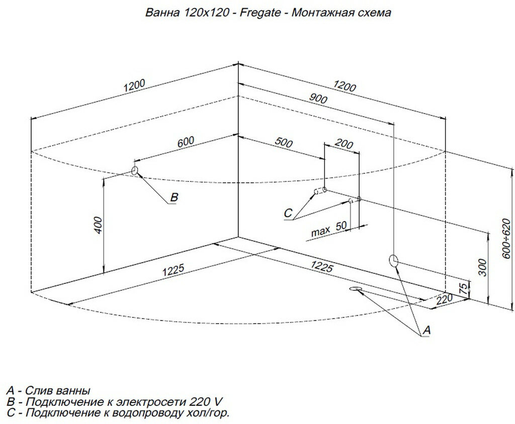 Акриловая ванна Aquanet Fregate 120х120 205488 на каркасе интересное: