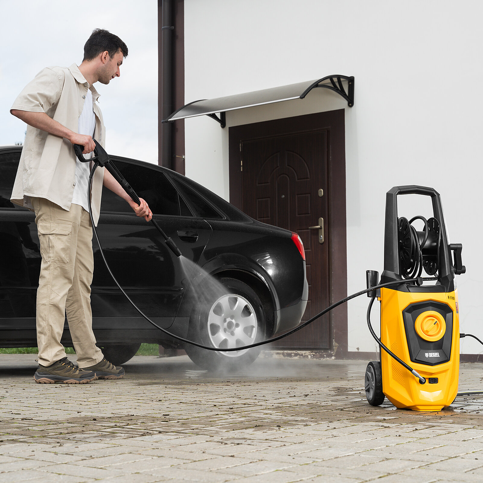 Моечная машина высокого давления Denzel R-170D 2000 Вт, 170 бар, 360 л/ч, с барабаном 58229