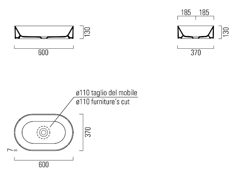 KUBE X раковина накладная 60x37х13 без перелива керамическая белый матовый bianco matt GSI