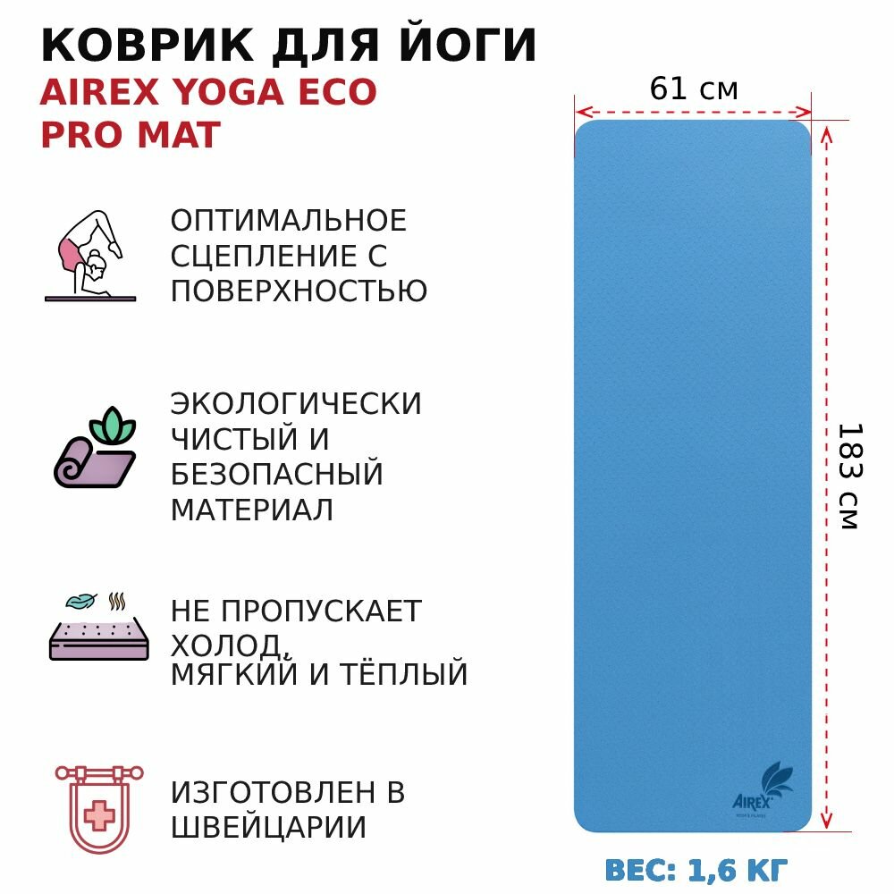 СохранитьКоврик для йоги AIREX Yoga ECO Pro Mat blue, 183х61х0,4 см., цвет синий интересное: