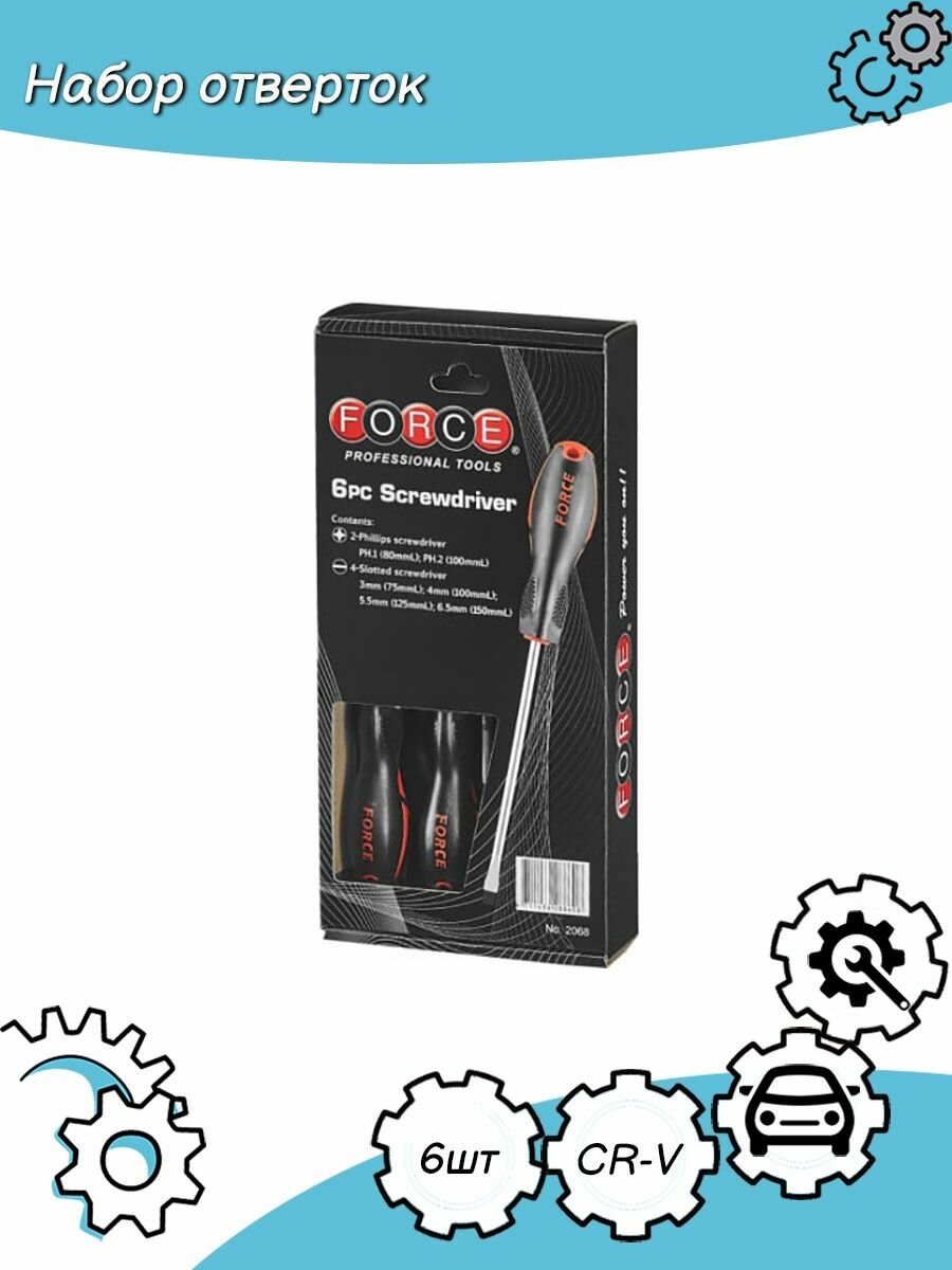 F-2068 FORCE Набор отвёрток 6пр. (шлиц 3-6.5мм; филипс P