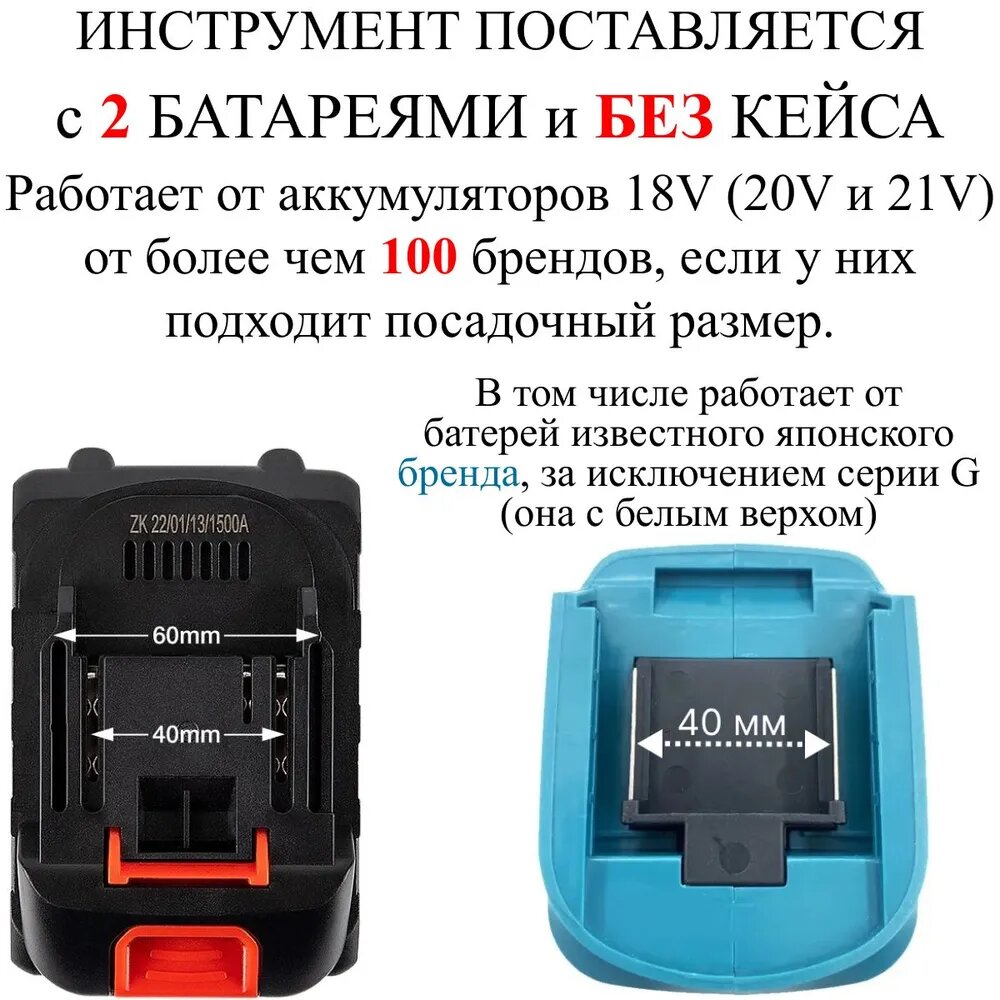 Винтоверт аккумуляторный, 2 батареи по 3 А*ч, без кейса, импакт ударный бесщеточный, шуруповерт совместим с аккумуляторами 18V, 20V, 21V интересное: