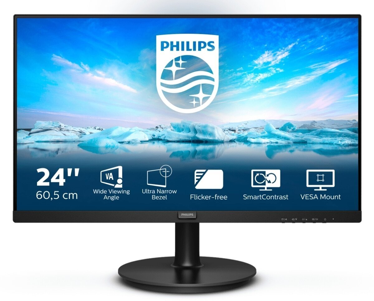 Монитор 23.8" Philips 241V8LA/00(01) Black (VA, 1920x1080, 75Hz, 4 ms, 178°/178°, 250 cd/m, 3000:1,