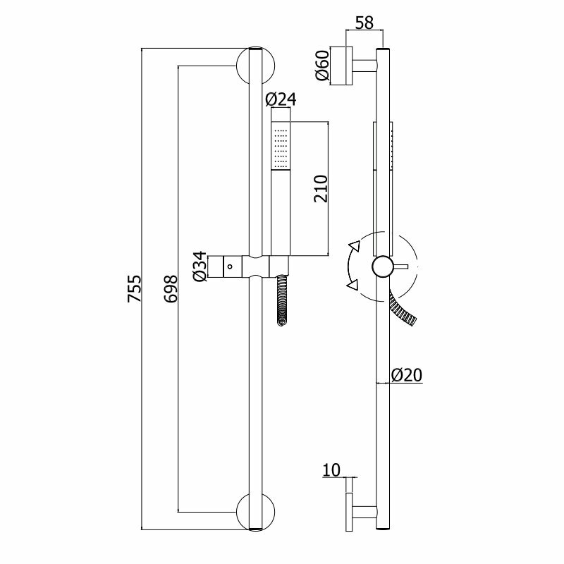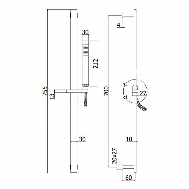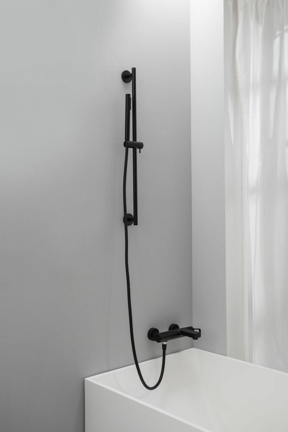 Душевая стойка из латуни LIFE 755мм, фиксаторы неподвиж. из металла, поворот.подвиж.крепл.для душа из металла , душ из металла , шланг из PVC 1500мм, цвет черный матовый, LIFE ZSAL135NO