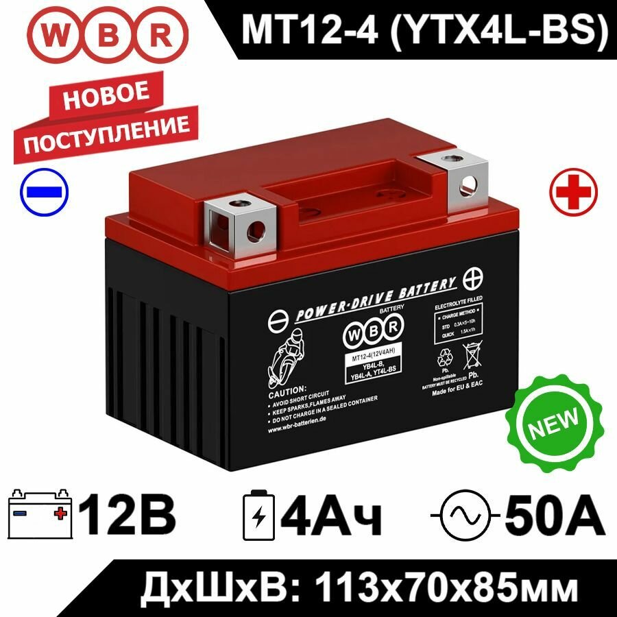 WBR Мото аккумулятор SMT12-4 12В 4 Ач УТ-00001181