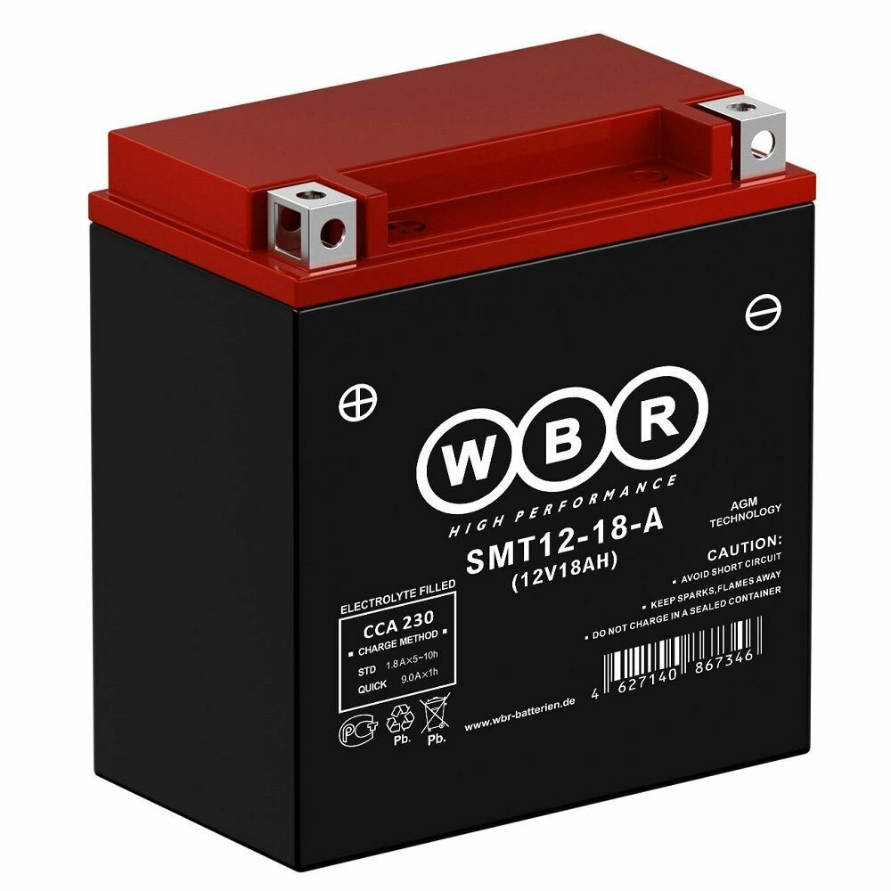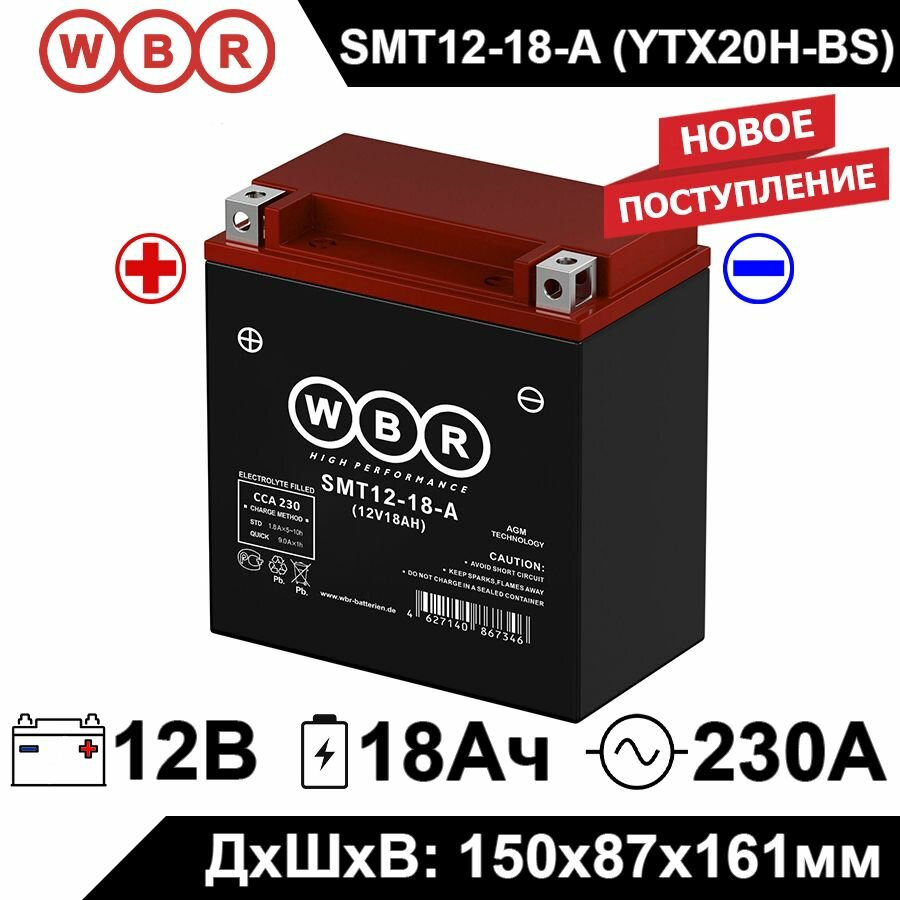 Мото аккумулятор стартерный WBR SMT12-18-A 12В 18Ач (12V 18Ah) YTX20H-BS, YTX20CH-BS 230A, AGM для мотоцикла, скутера, гидроцикла, квадроцикла, мопеда