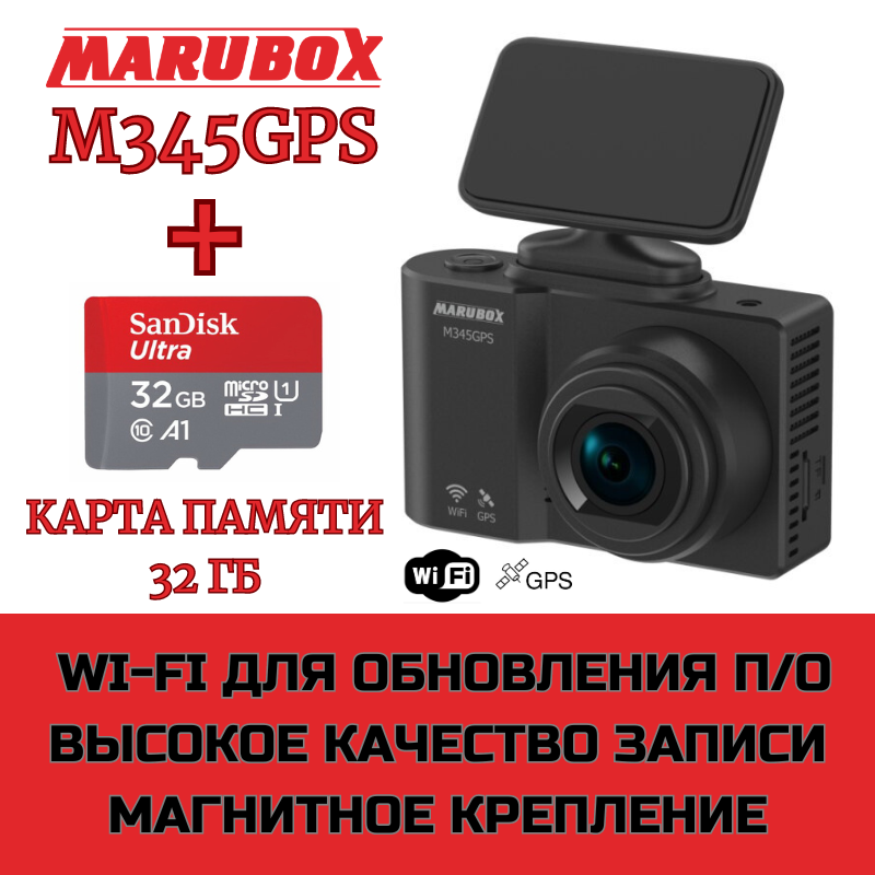 Видеорегистратор с GPS-информатором Marubox M345GPS + SanDisk microSDHC UHS-I 32Gb