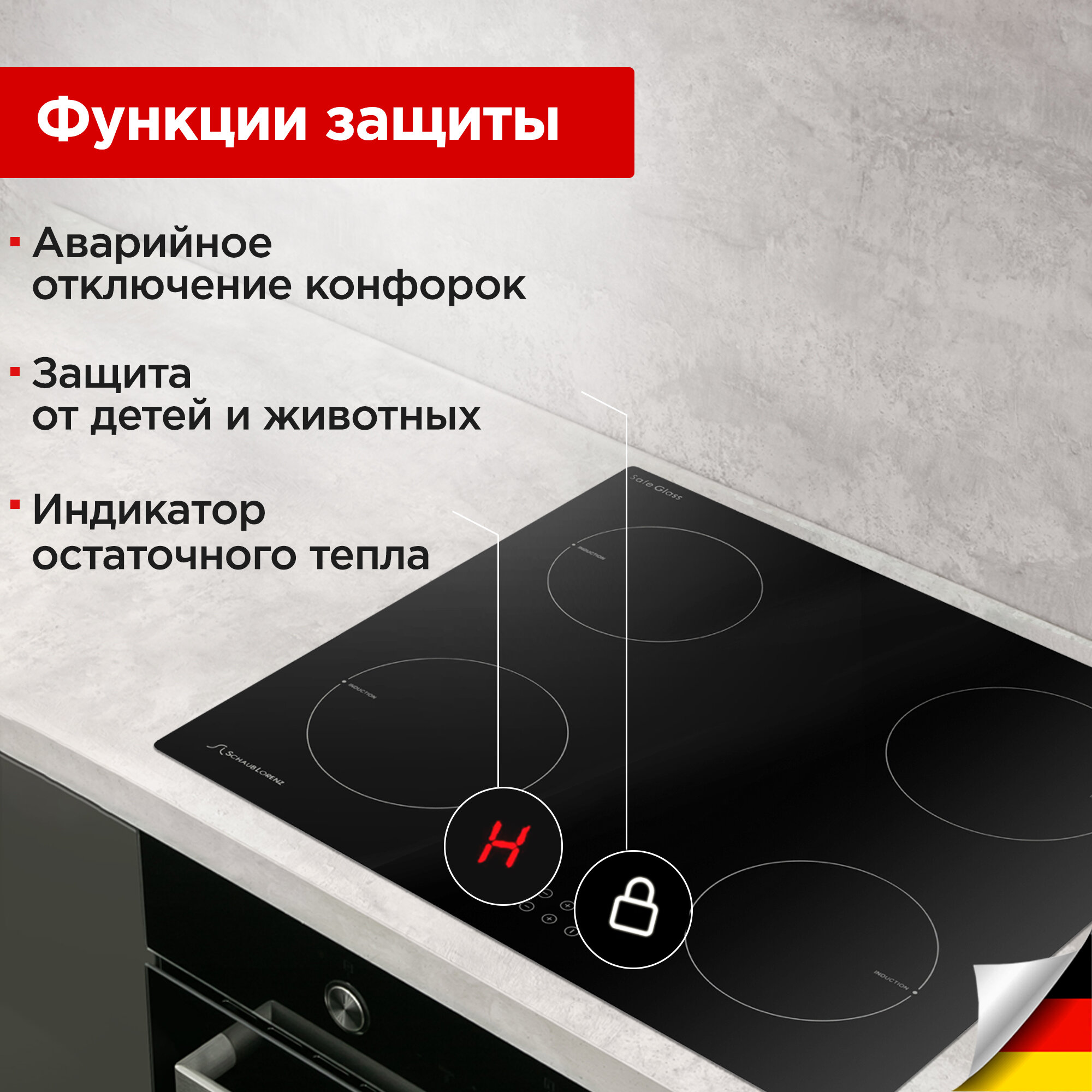 Индукционная встраиваемая варочная панель Schaub Lorenz SLK IY 60 T4, 60 см, сенсорное управление. интересное: