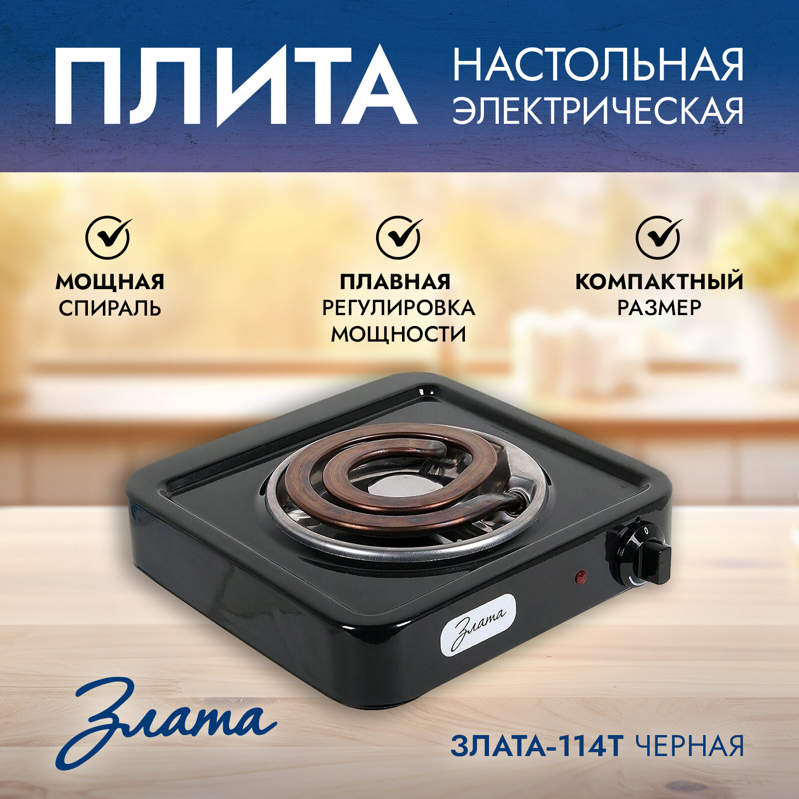 Плита электрическая настольная Злата 114Т черная