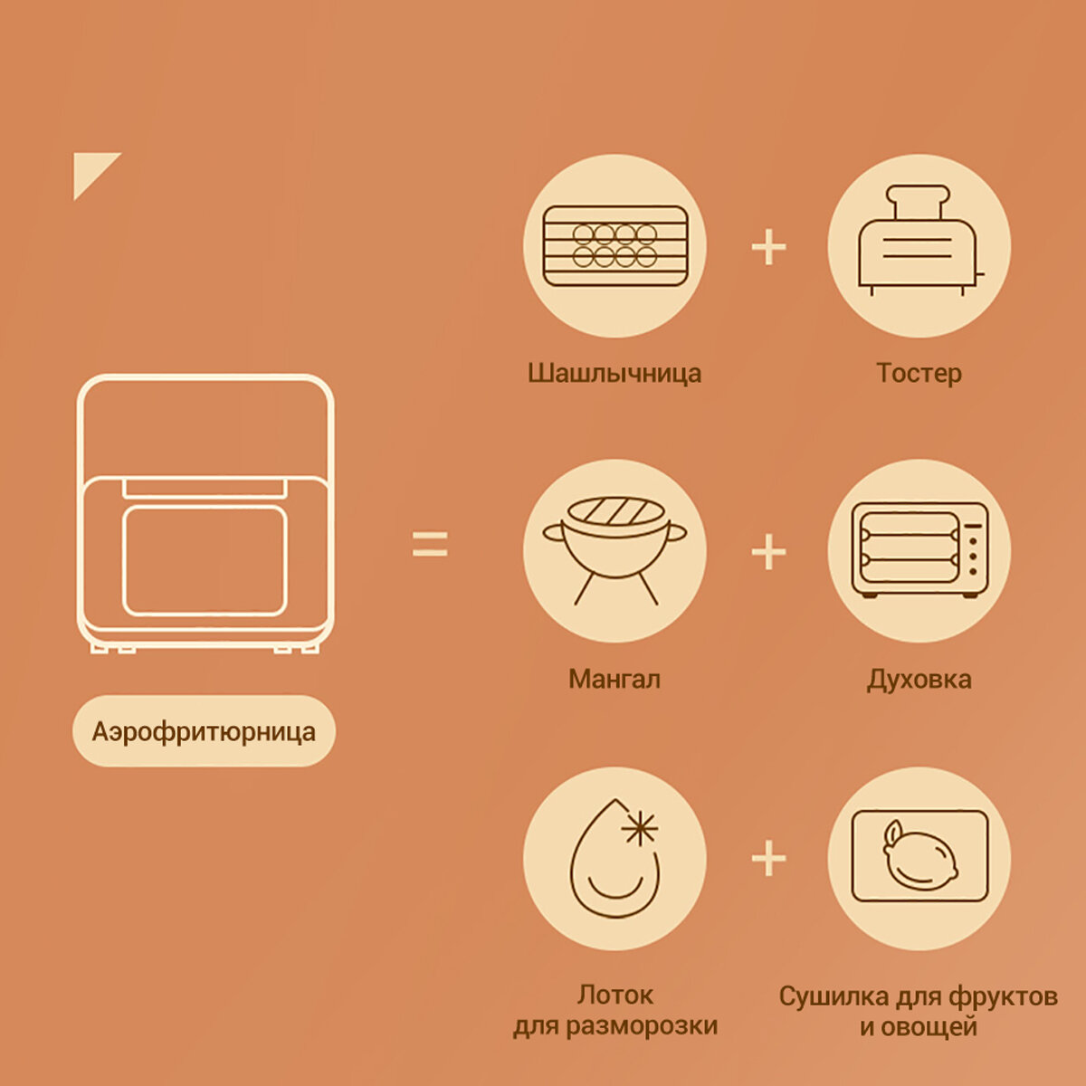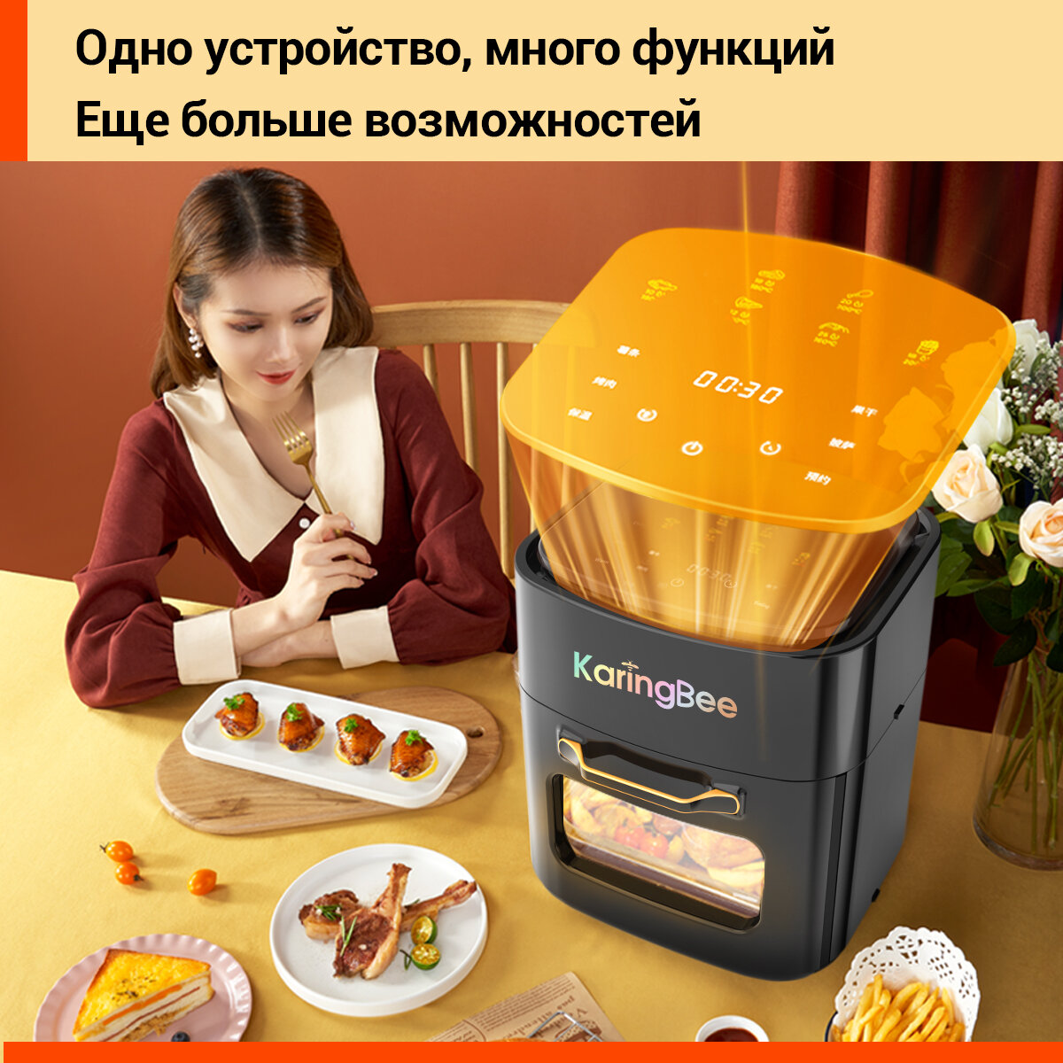 Аэрогриль электрический KaringBee JD689 белый(ЕАС-сертификат) /100 вкладышей в подарок/6 блюд/объем 8 л/Мультипечь для кухни 1400 вт