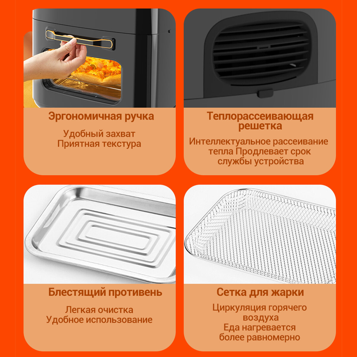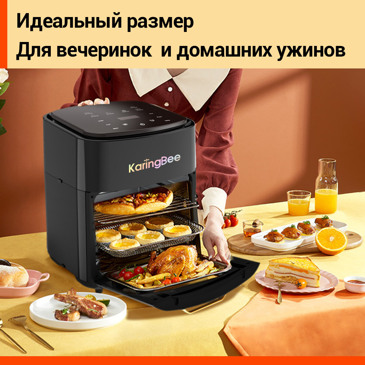 Купить Аэрогриль KaringBee JD989 черный /Аэрофритюрница электрическая/6 программ приготовления/объем 15л/2 в 1 фритюрница+духовка