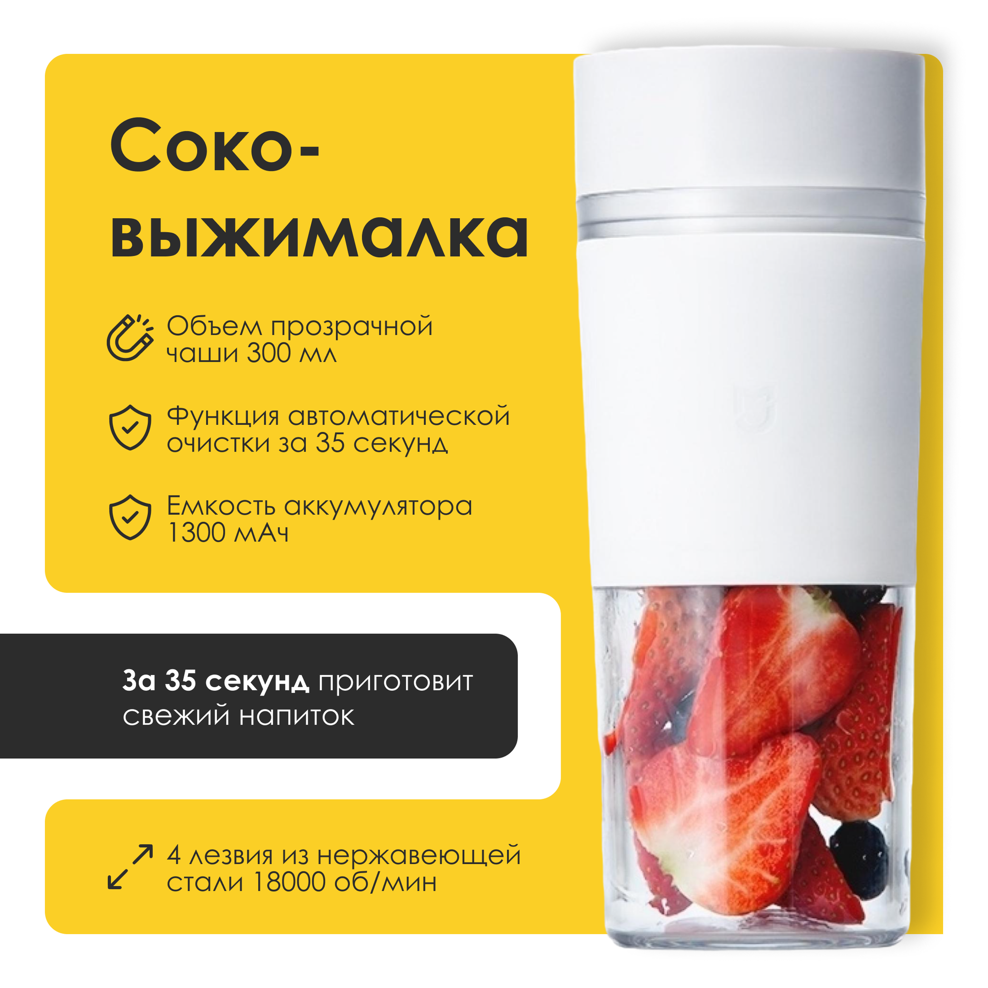 Портативный блендер Xiaomi 300ml white интересное: