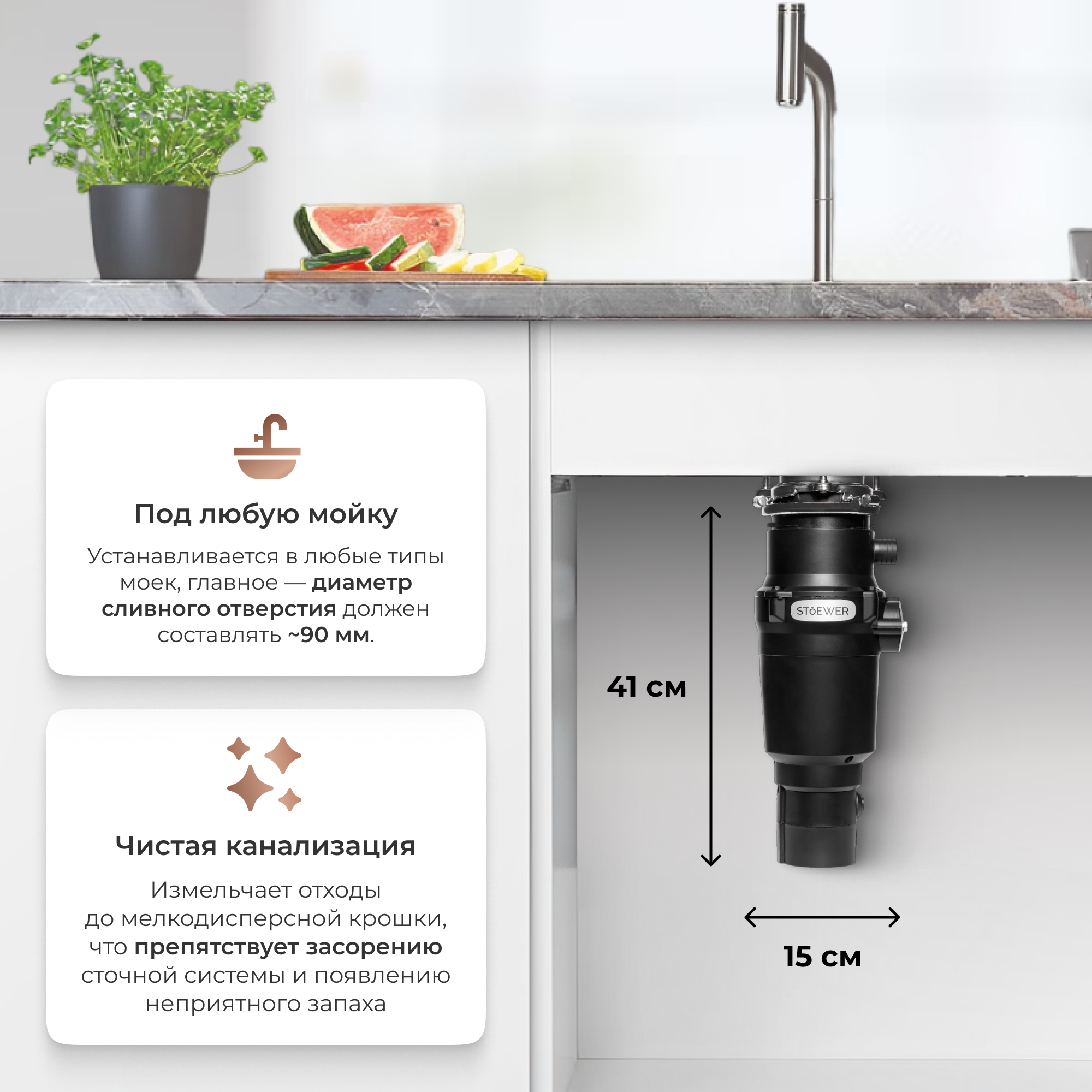Измельчитель пищевых отходов STOEWER штоер D640 Slim MAX интересное: