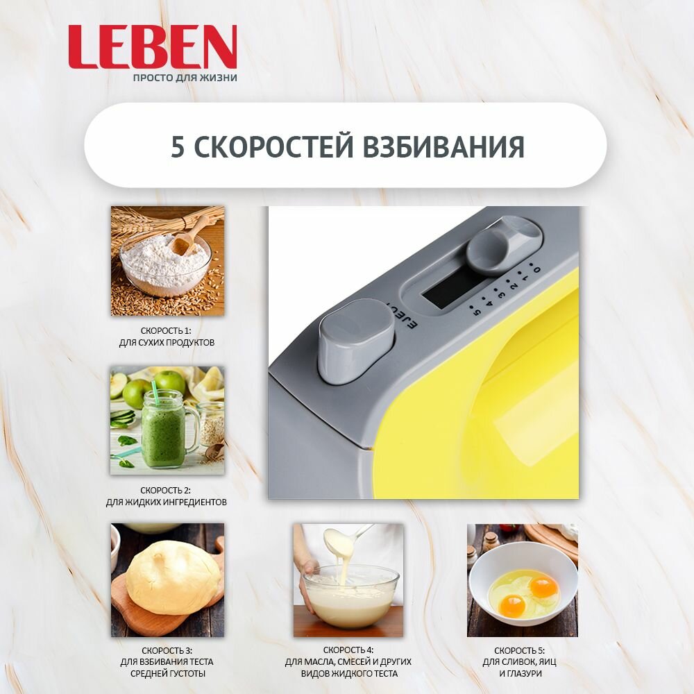 Миксер кухонный электрический LEBEN 300 Вт, 5 скоростей, жёлтый интересное: