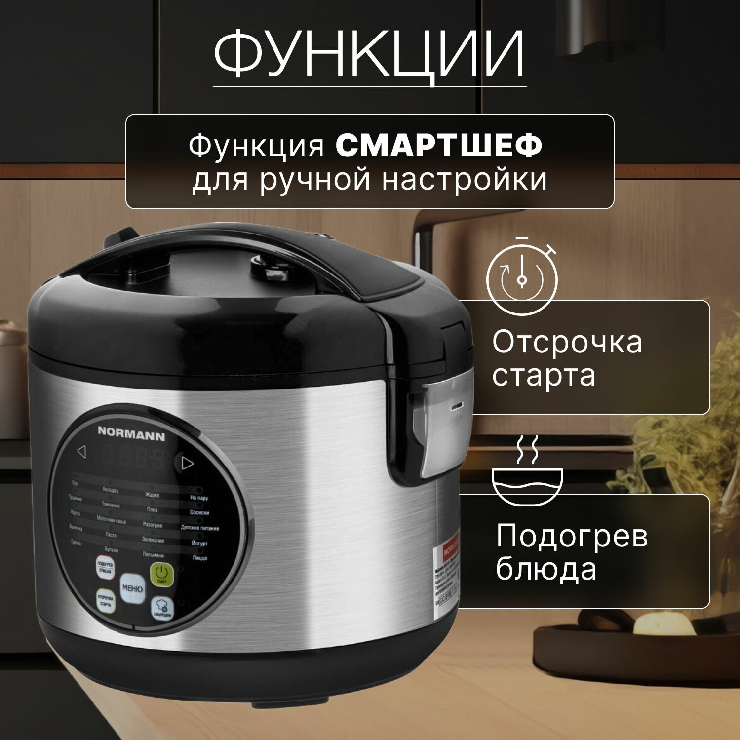 Мультиварка NORMANN AMC-434 5л, 15 программ, смартшеф, паровая корзина
