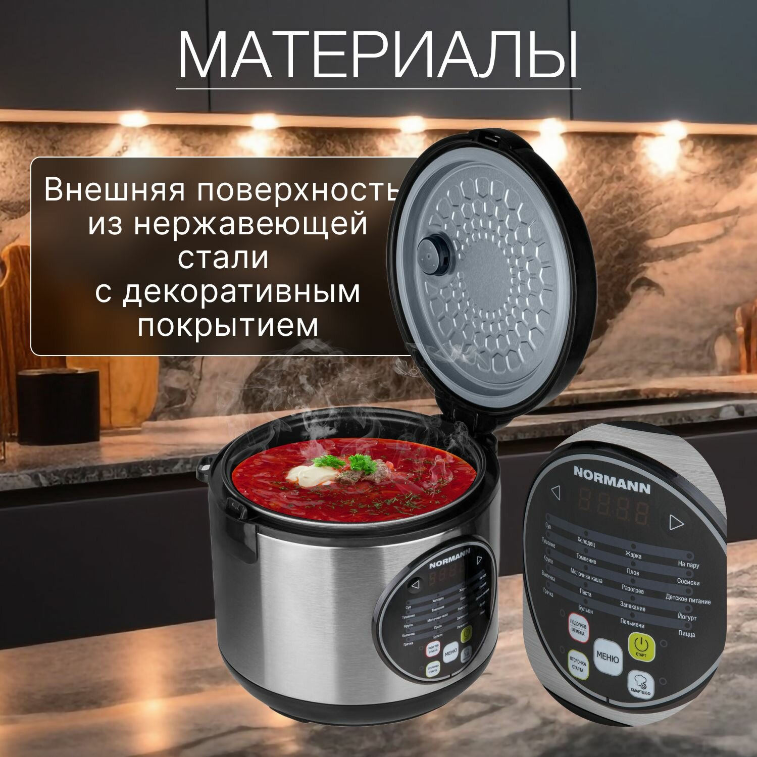 Мультиварка 3 литра с антипригарным покрытием и 20 программами NORMANN AMC-431 интересное: