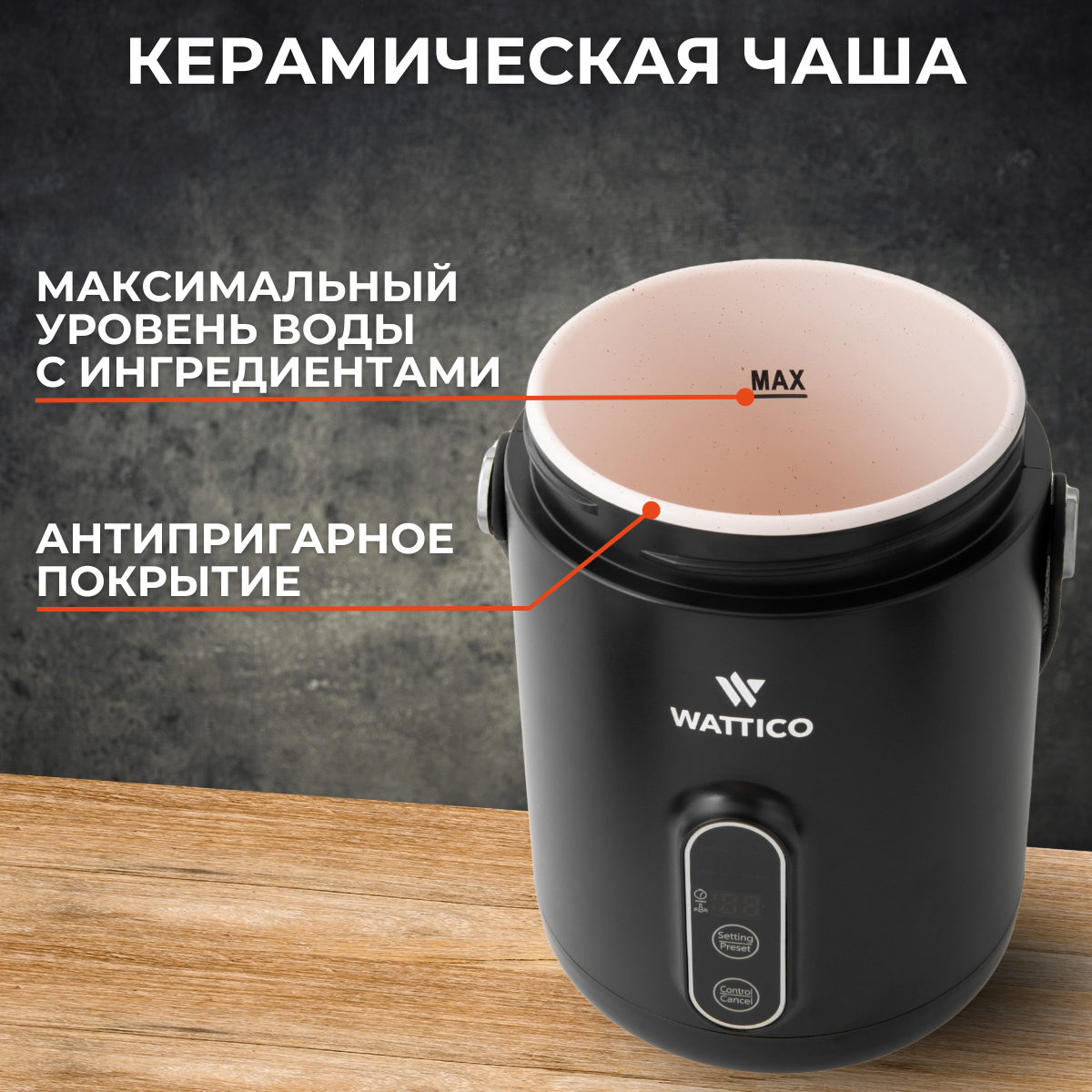 Портативная мини мультиварка WATTICO. 500 Вт, объем 0.6 л Черная интересное: