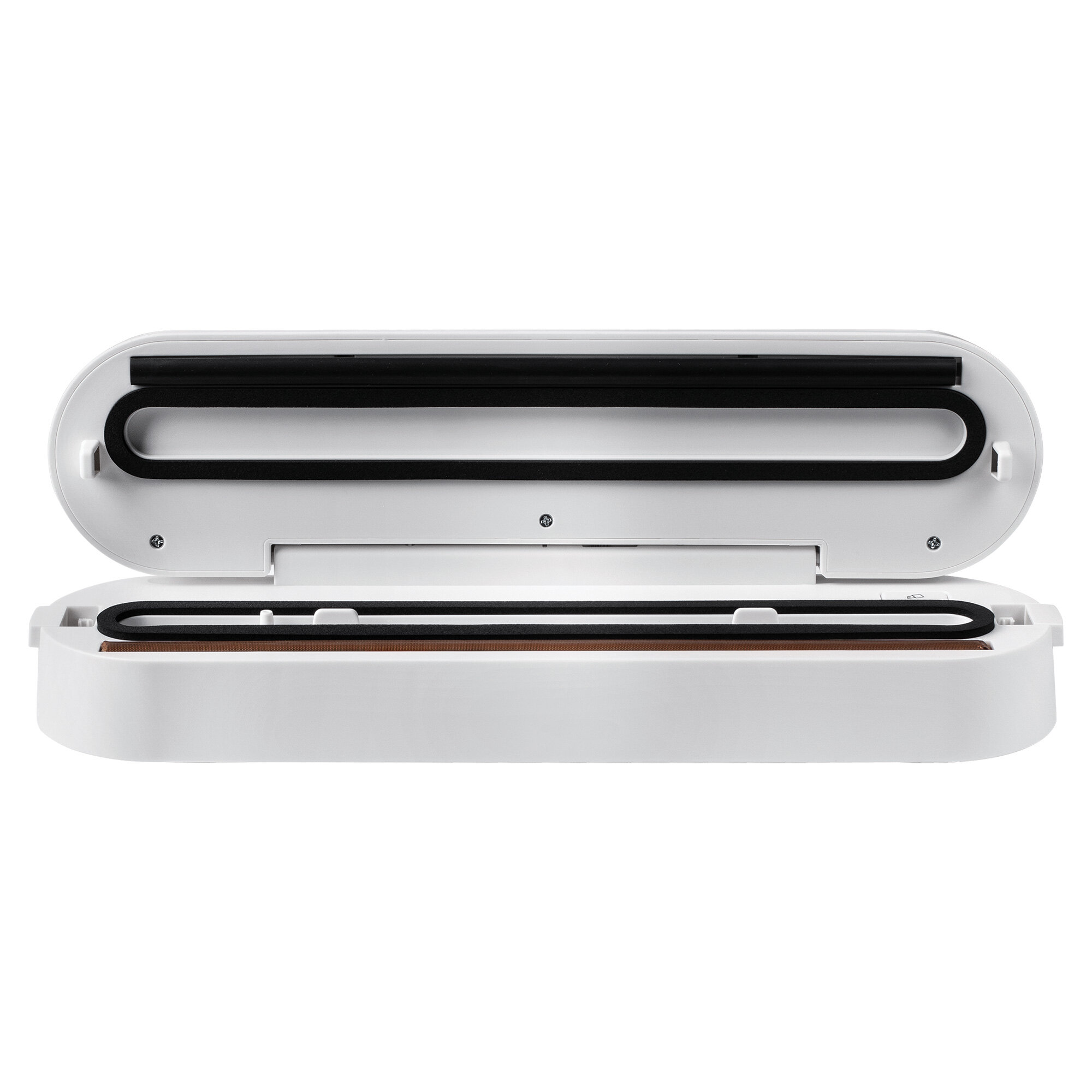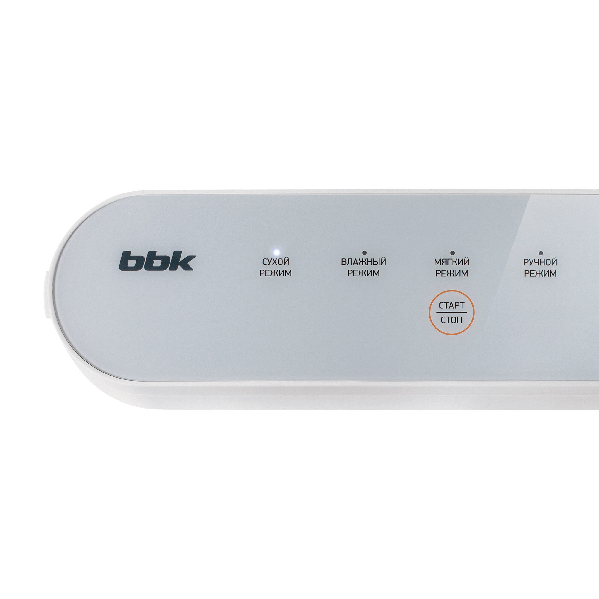 Вакуумный упаковщик со встроенным ножом для пленки BBK BVS602 белый, степень вакуума 0,6 бар, мощность 90 Вт, 5 режимов работы, сенсорное управление