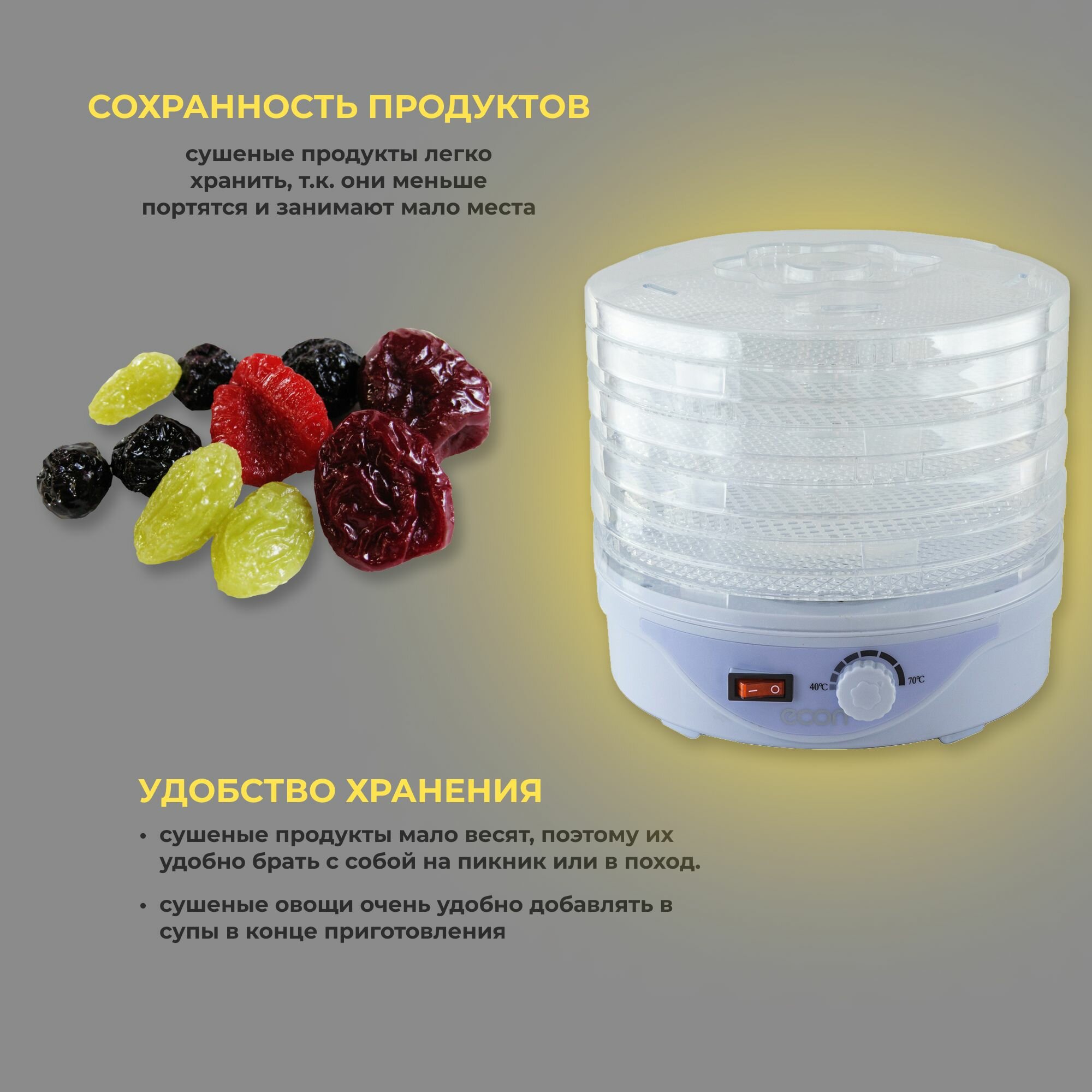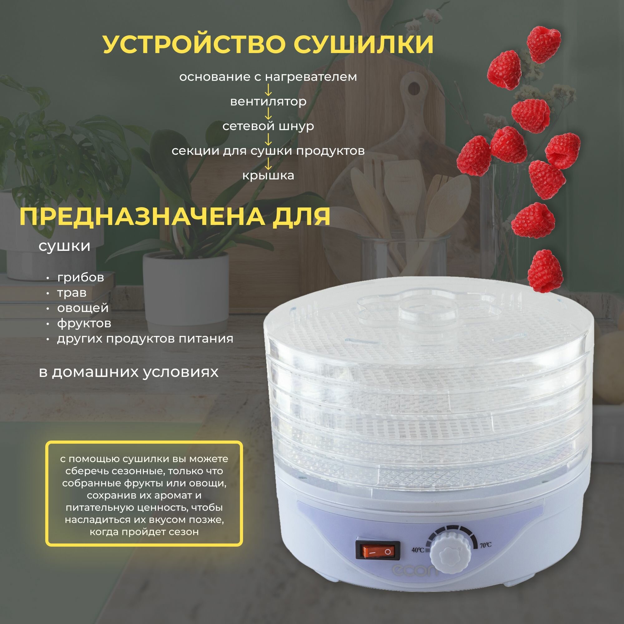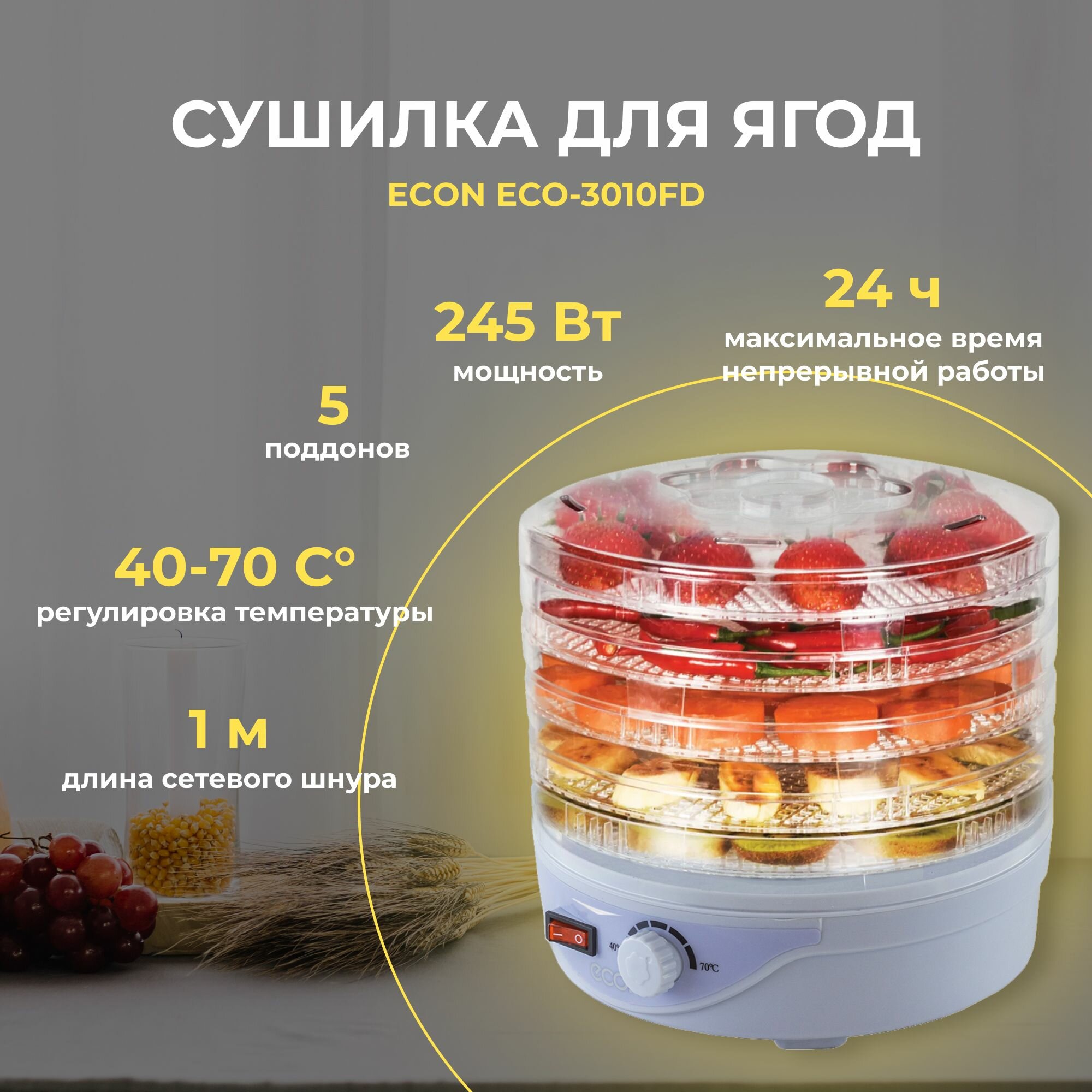 Сушилка для ягод ECON ECO-3010FD, до 5 кг, регулировка температуры, белая интересное: