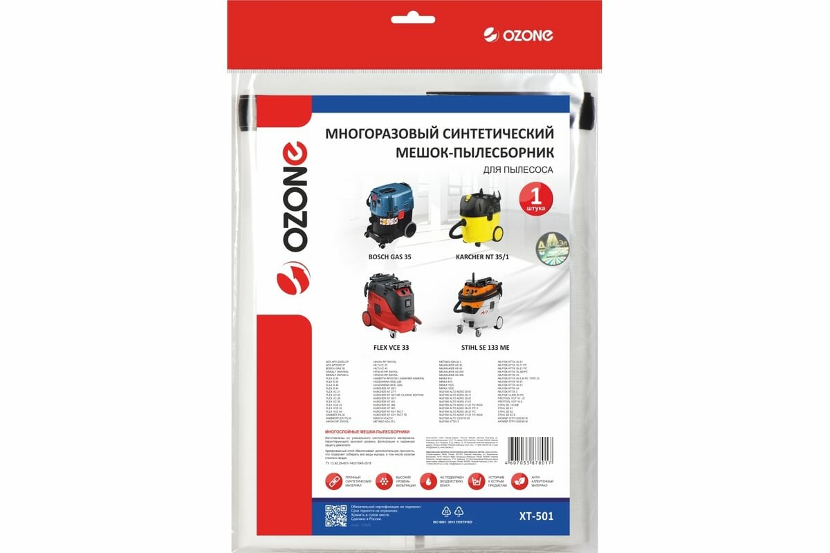 Мешок-пылесборник Ozone XT-501 1шт для Bosch Gas 35/Karcher NT 35/1/Dewalt/Flex/Hammer//Hilti/Metabo