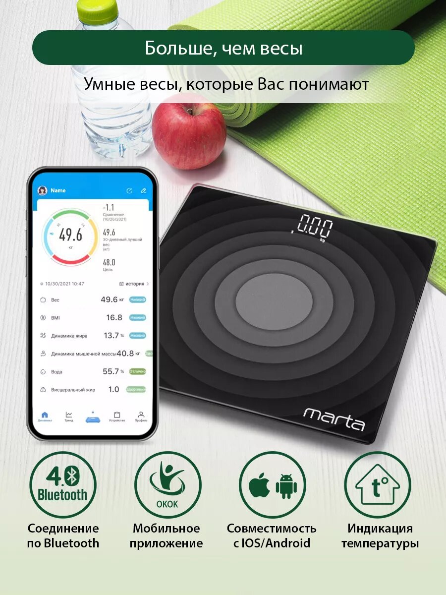 Весы напольные умные MARTA MT-SC3603 черный жемчуг