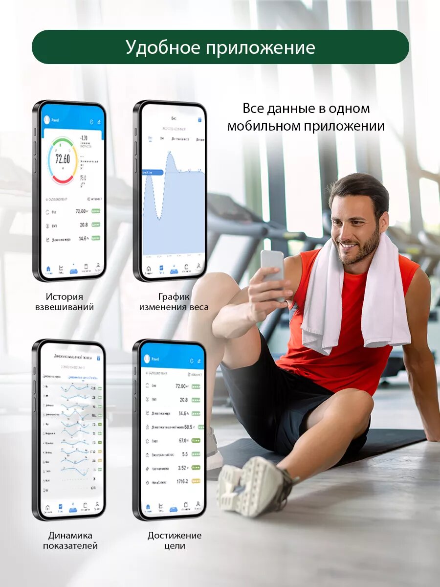 | Плюсы: | Цена, точность в измерении, инструкция, приложение с остальными измерениями по типу уровня воды в теле, мышечной массы, возраста тела и т. д. и т. п. |